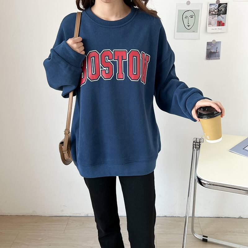 Nomikuma スウェット女性 2022 秋パーカートップ因果手紙ジャンパー長袖 O ネックプルオーバー ロング シャツ オータム 秋物 Oネック kor52341913008