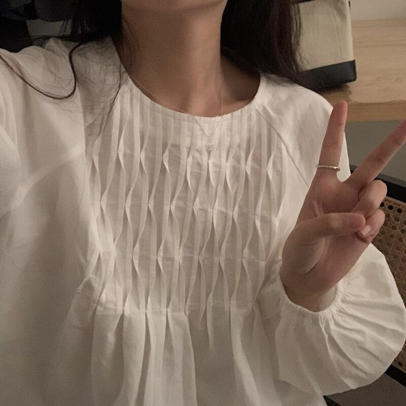 Nomikuma シックなひだ O ネックドールシャツ女性ランタンスリーブブラウストップス因果 2022 秋 s es オータム 秋物 Oネック kor87553642908