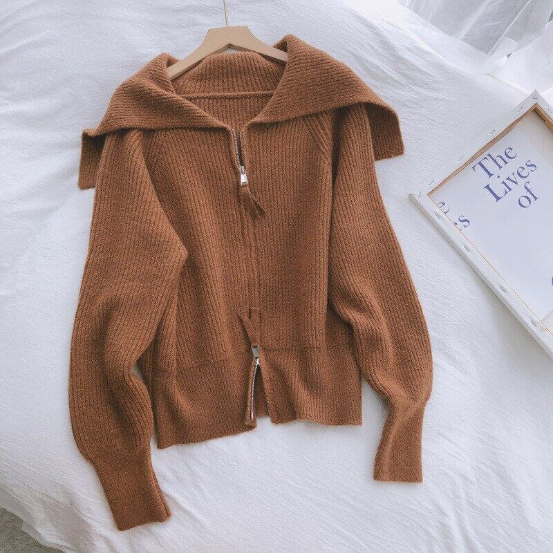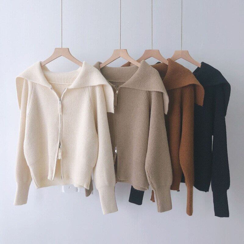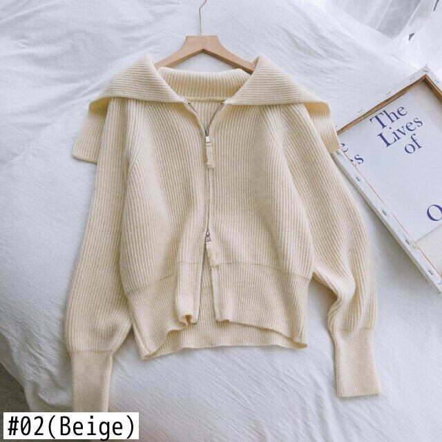Nomikuma 無地ジッパーセーラー襟セーターコート因果女性ニットジャケット 2021 秋冬ニットカーディガン 6Z470 オータム 秋物 ウィンター 冬物 ソリッドカラー kor62894454964