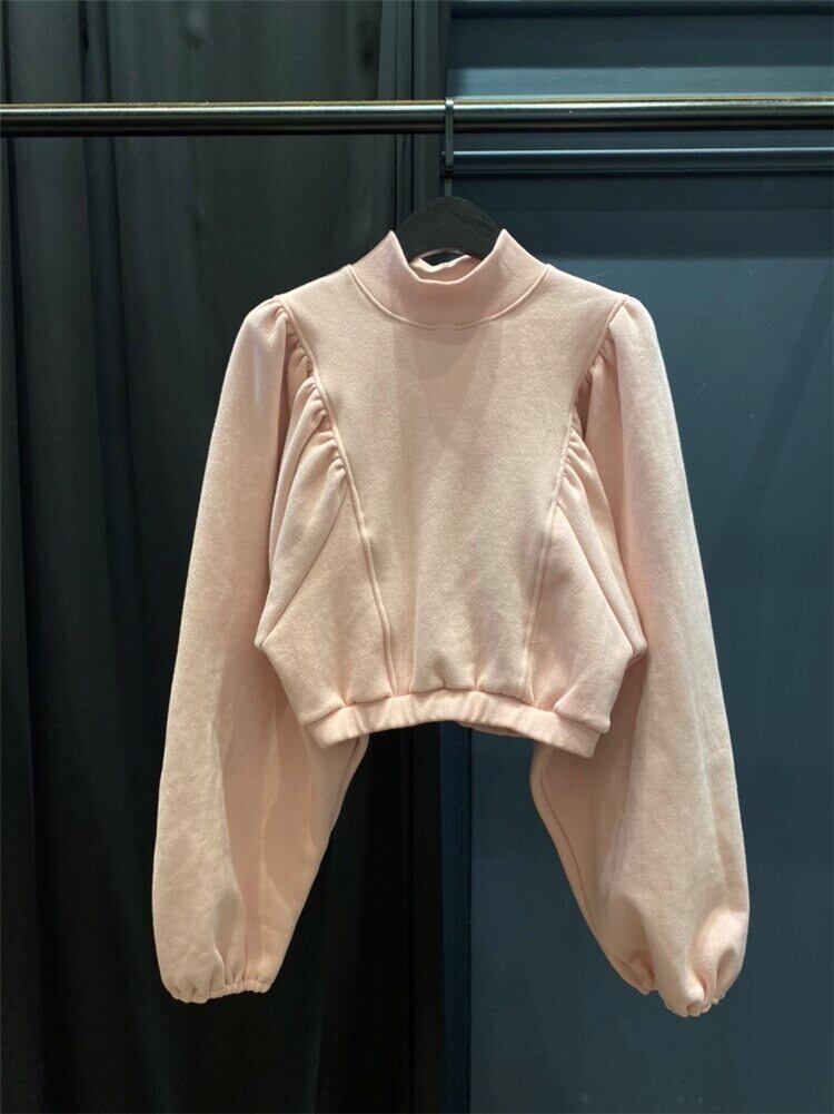 Nomikuma 2022 O ネックひだパフスリーブプルオーバースウェットシャツ因果無地女性ジャンパー秋パーカートップ オータム 秋物 Oネック ソリッドカラー kor92186093989
