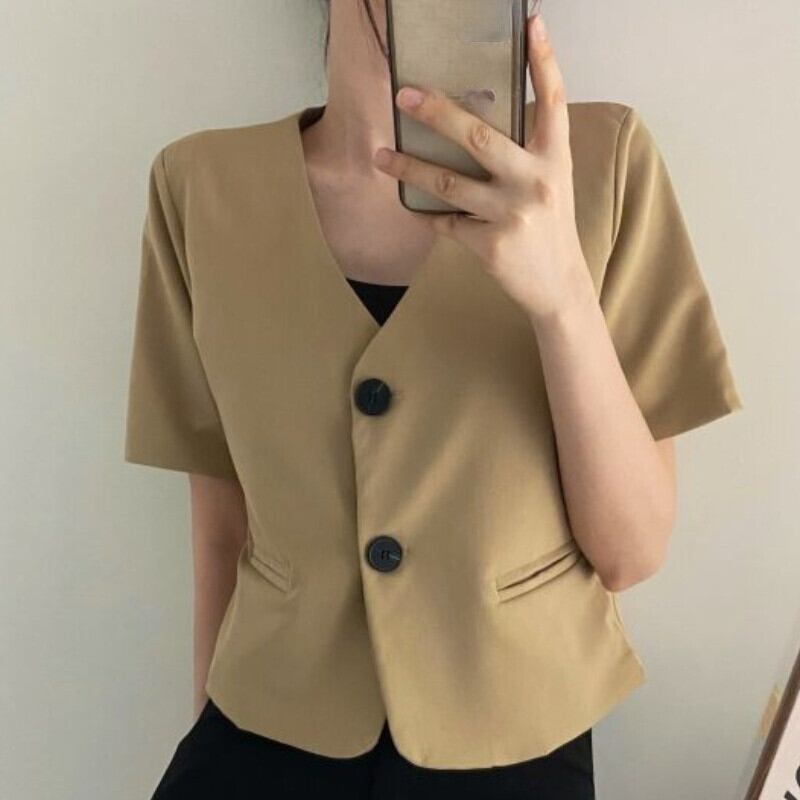 Nomikuma 半袖 V ネックブレザーコート女性無地ブレザー 2021 夏薄型シングルブレストスーツジャケット 6H311 ショート ハーフスリーブ サマー 夏物 Vネック ソリッドカラー kor88038433640