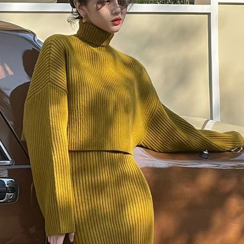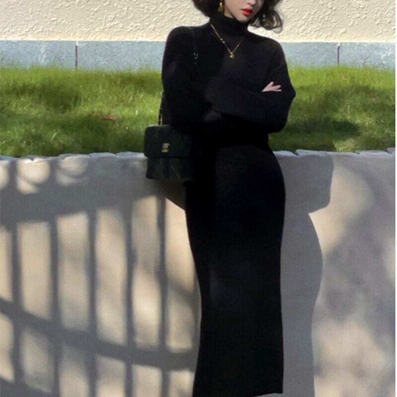 Nomikuma 秋冬二枚女性ニットセット長袖タートルネックプルオーバーセーター + スリム Baisc タンクドレス 2022 ロング オータム 秋物 ウィンター 冬物 kor52467654407