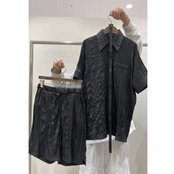 Nomikuma 2022 夏女性セット ターンダウン襟半袖ブラウス トップ + ウエスト カジュアル ショーツ 2 ピース ショート ハーフスリーブ サマー 夏物 ブルマー kor43134540464