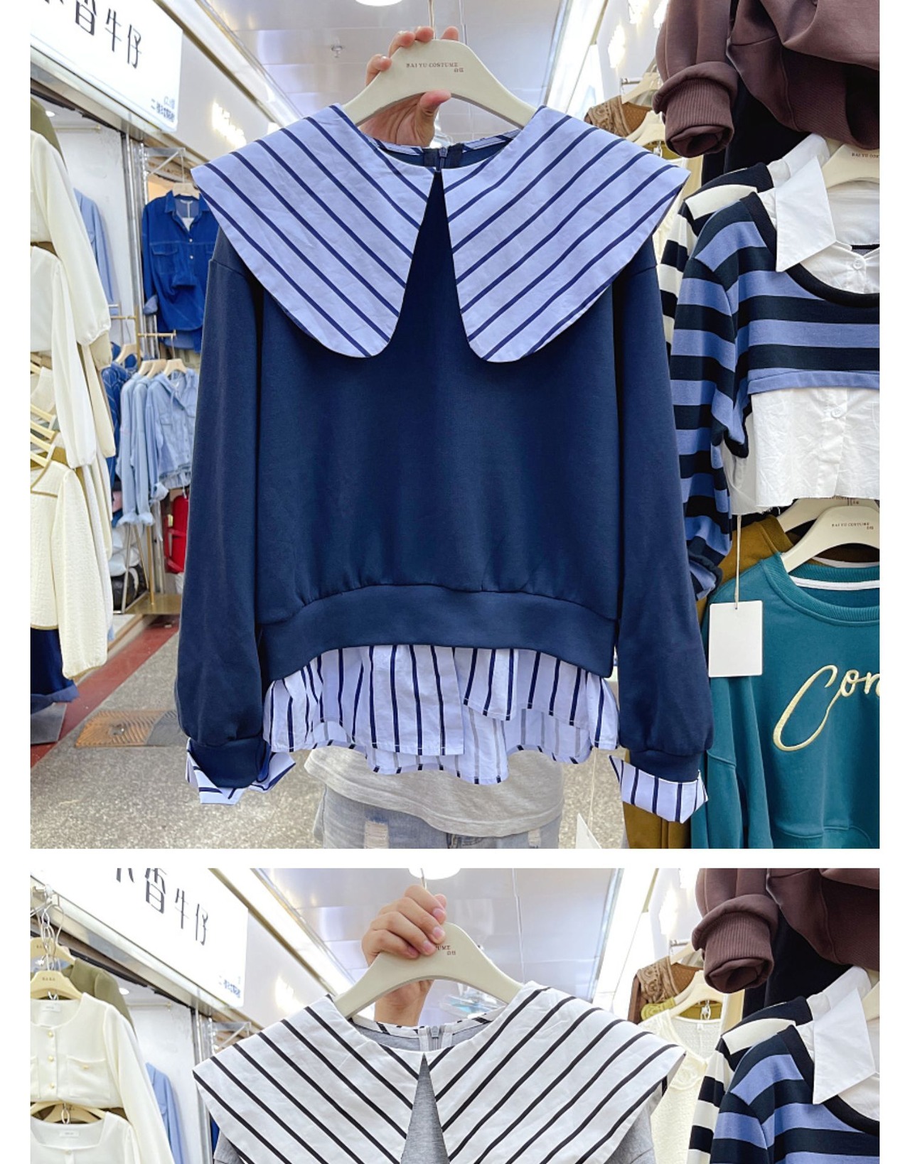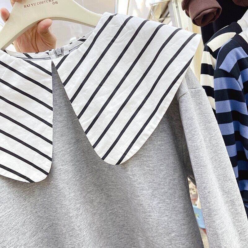 Nomikuma ストライプブラウスパッチワークパーカー女性 2022 秋長袖ピーターパン襟スウェットシャツ因果プルオーバートップス ロング オータム 秋物 kor48408281234