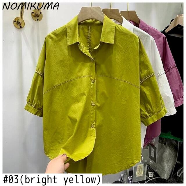 Nomikuma 2022 夏女性トップス因果ハーフパフスリーブ無地人形シャツバック中空アウトブラウス サマー 夏物 ソリッドカラー kor32448007536