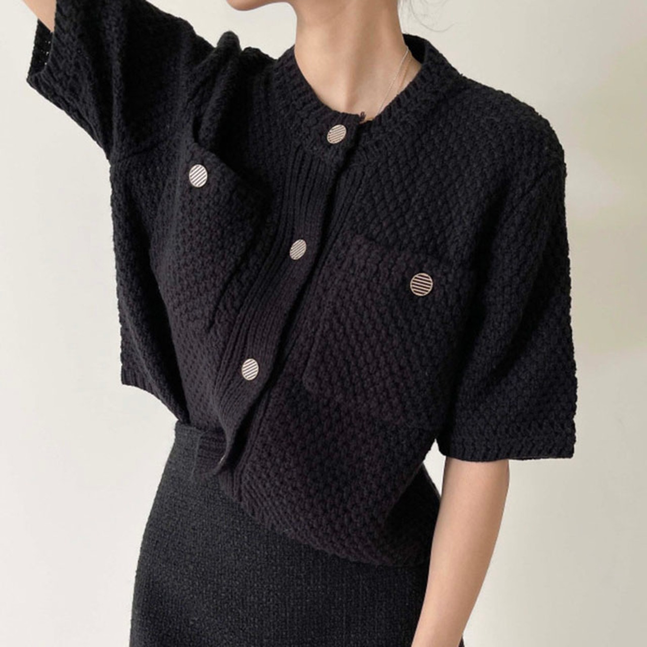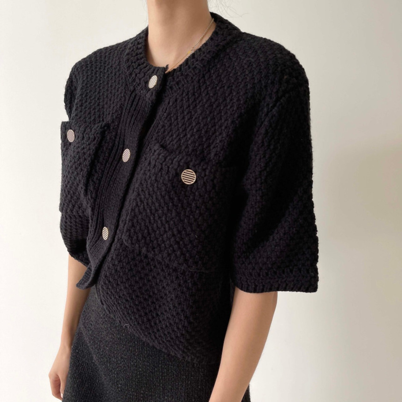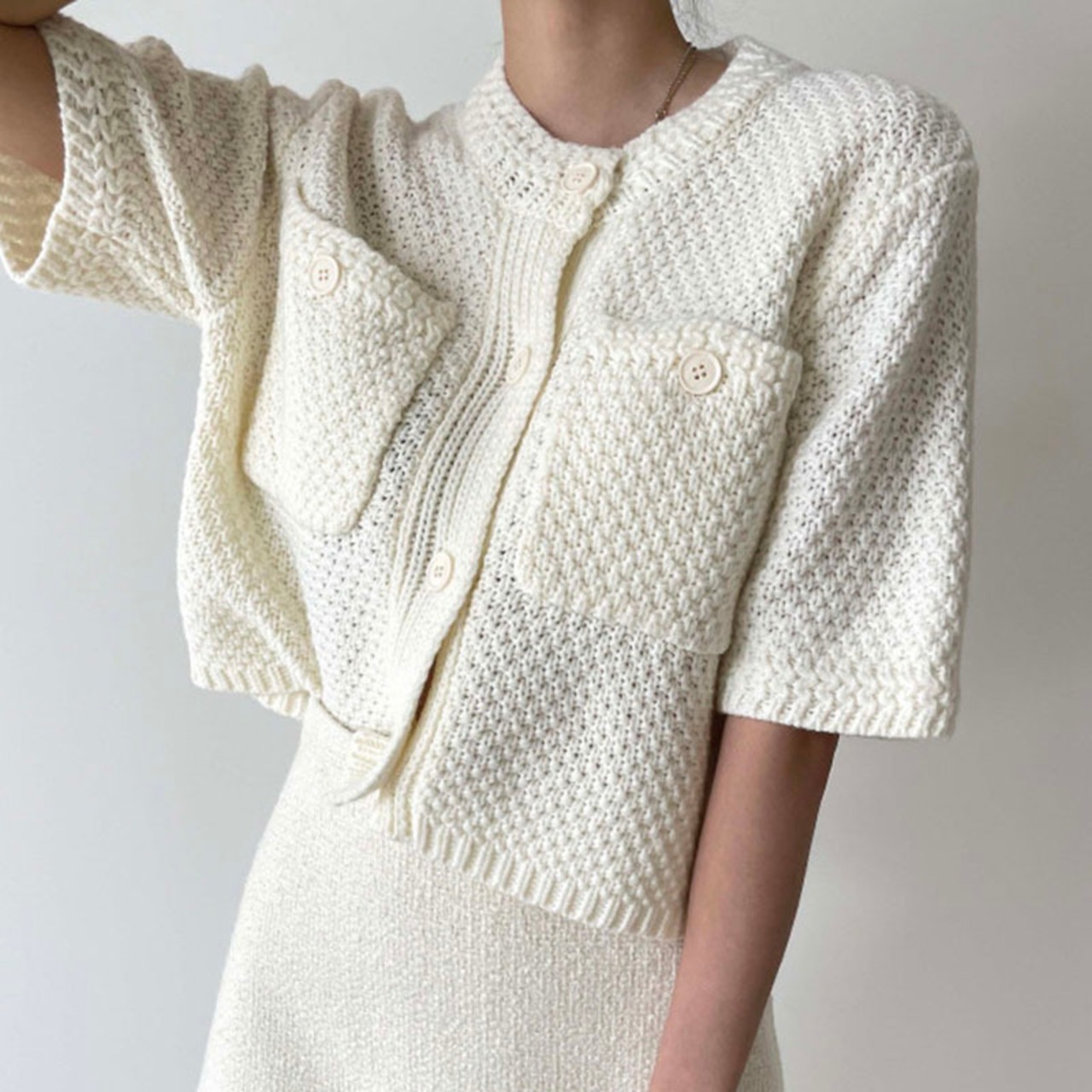 Nomikuma シックなショートニットコート因果ポケットシングルブレストニット 2022 春スリーブ O ネック女性カーディガン スプリング 春物 Oネック kor13000366166