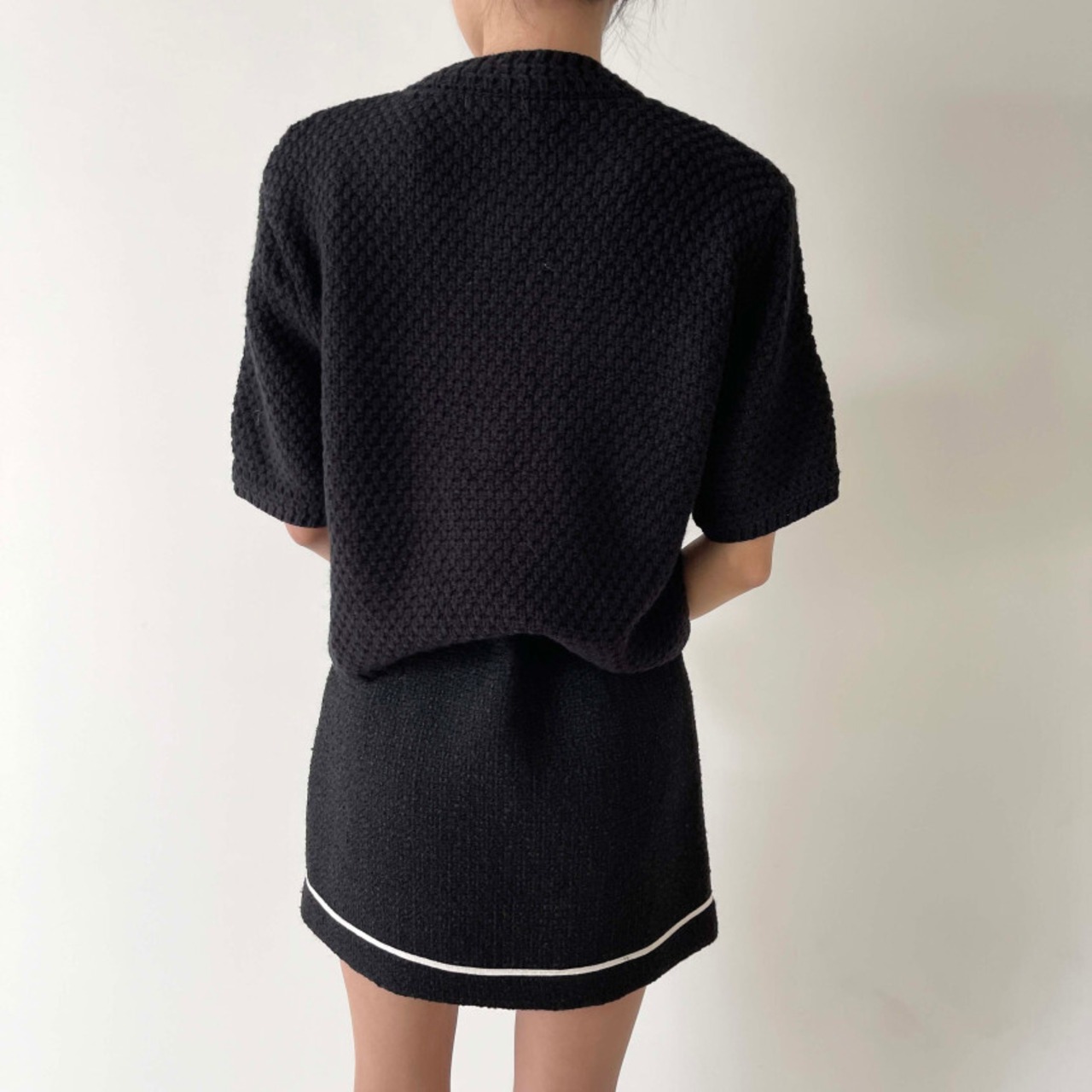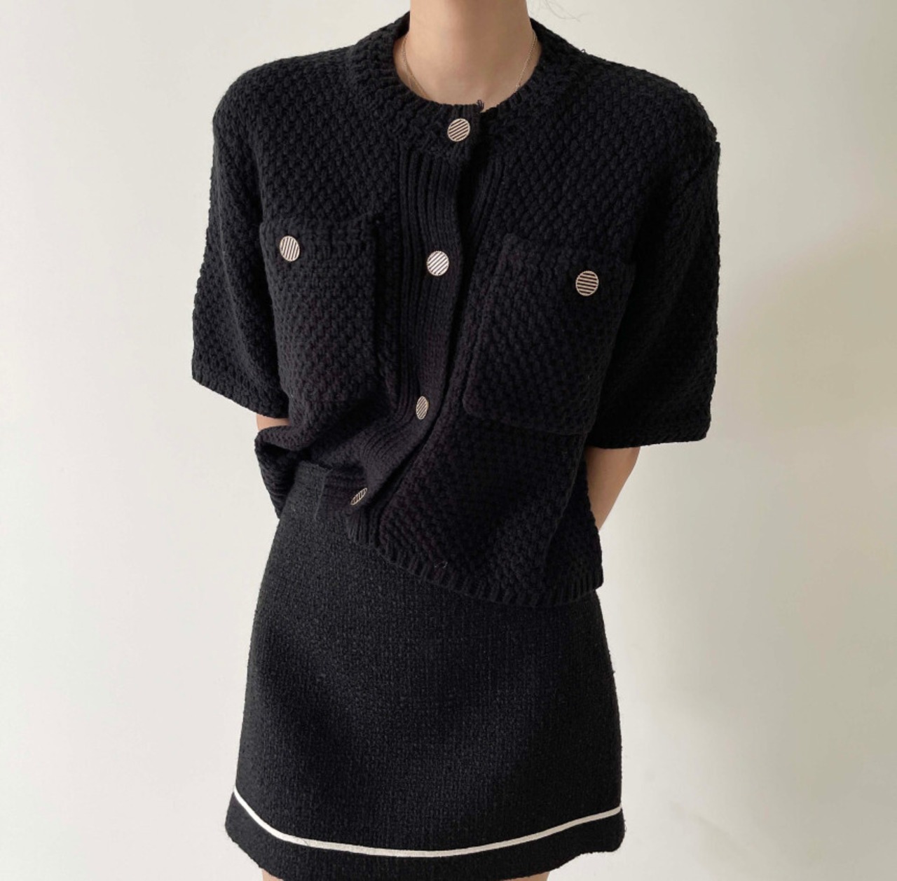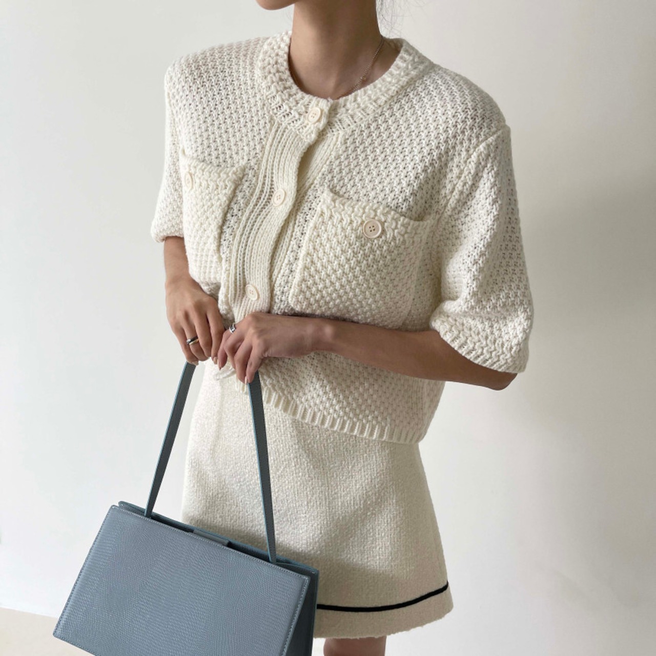 Nomikuma シックなショートニットコート因果ポケットシングルブレストニット 2022 春スリーブ O ネック女性カーディガン スプリング 春物 Oネック kor13000366166