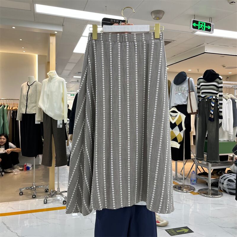 Nomikuma シックな刺繍格子縞のスカートレディース 2022 秋スタイル因果 A ラインスカートボトムス段 Faldas Moda オータム 秋物 Aライン kor2003271092
