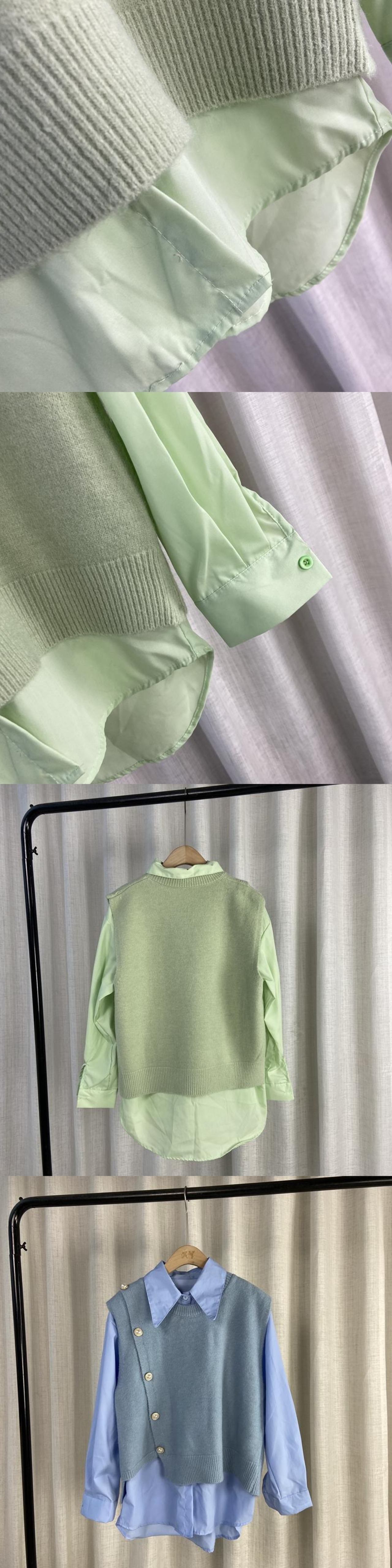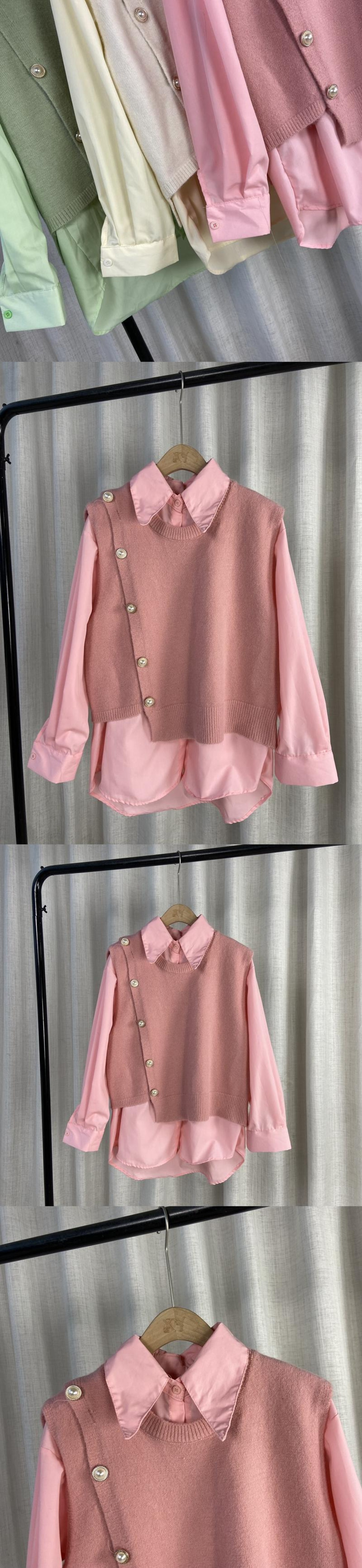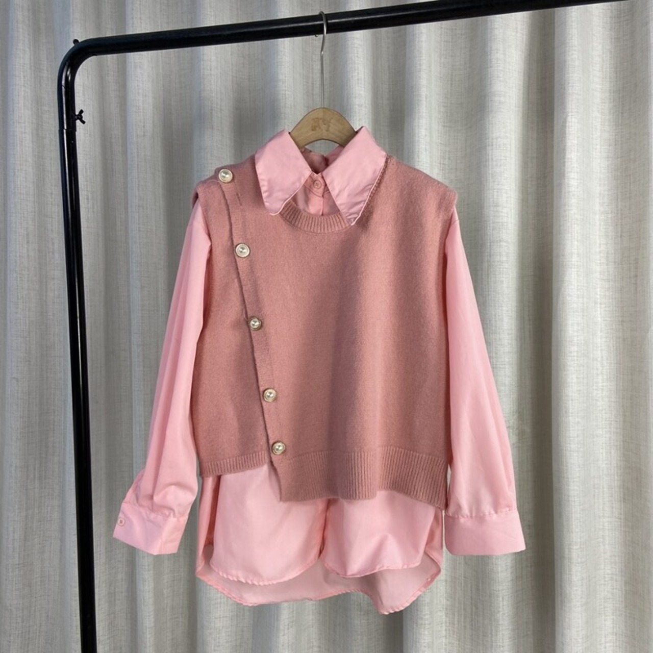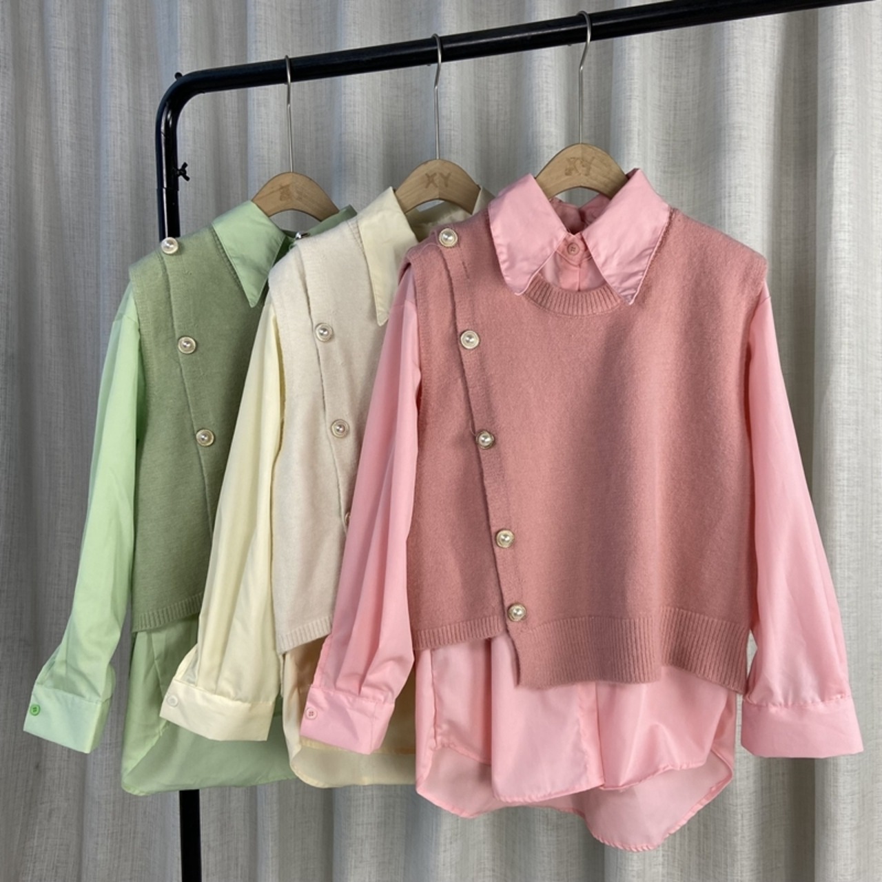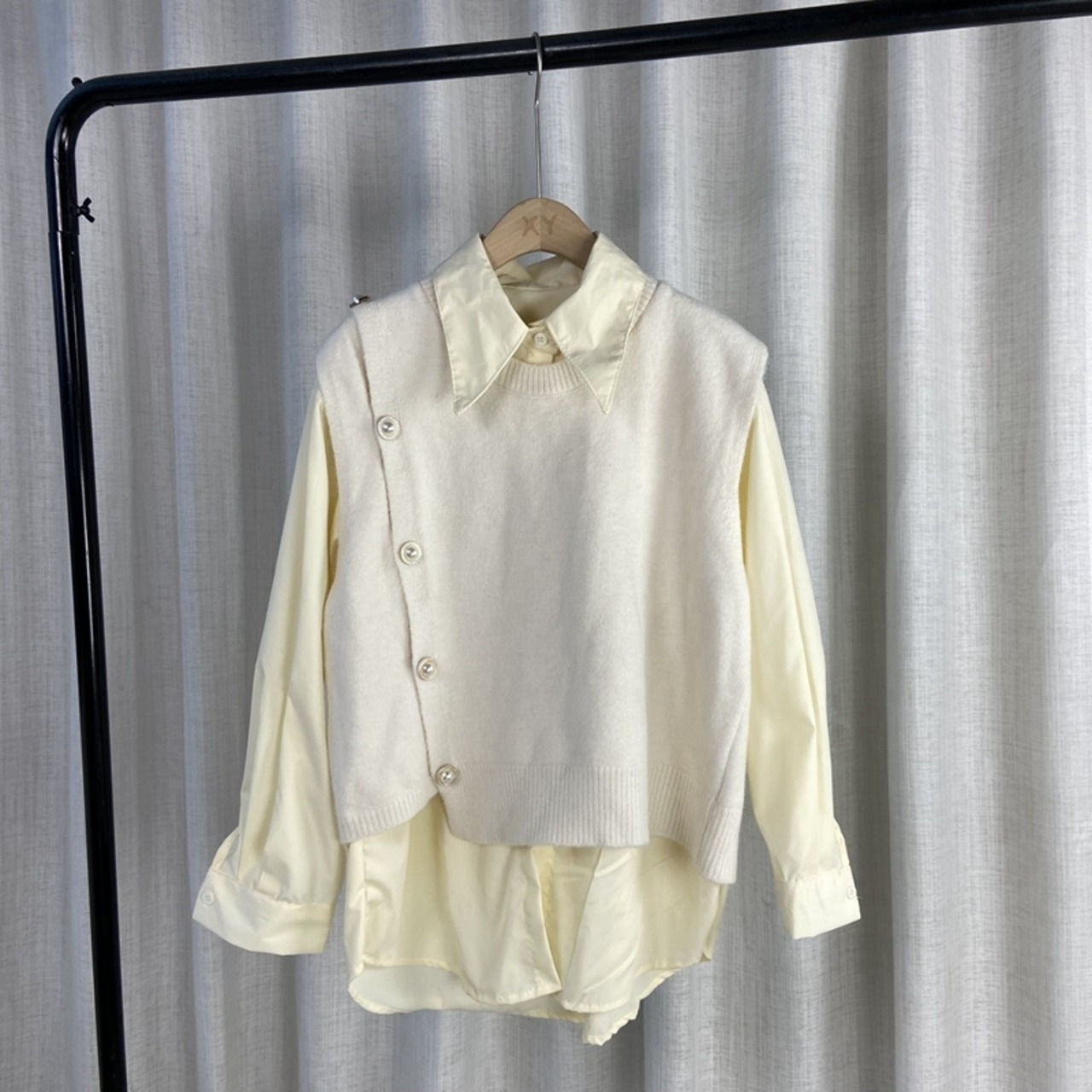 Nomikuma 2022 ツーピース女性セット長袖ターンダウン襟無地ブラウストップス + ノースリーブ O ネックプルオーバーニットベストスーツ ロング Oネック ソリッドカラー kor62814462319