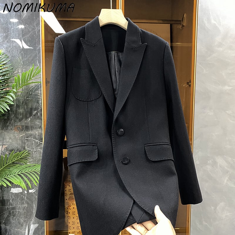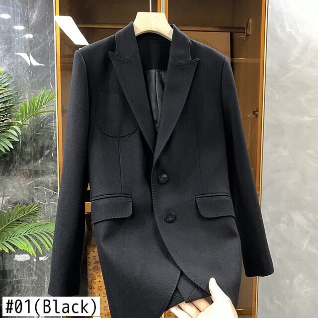 Nomikuma ノッチ襟女性ブレザー因果長袖シングルブレストコート 2022 春無地スーツジャケット ロング スプリング 春物 ソリッドカラー kor46476924084