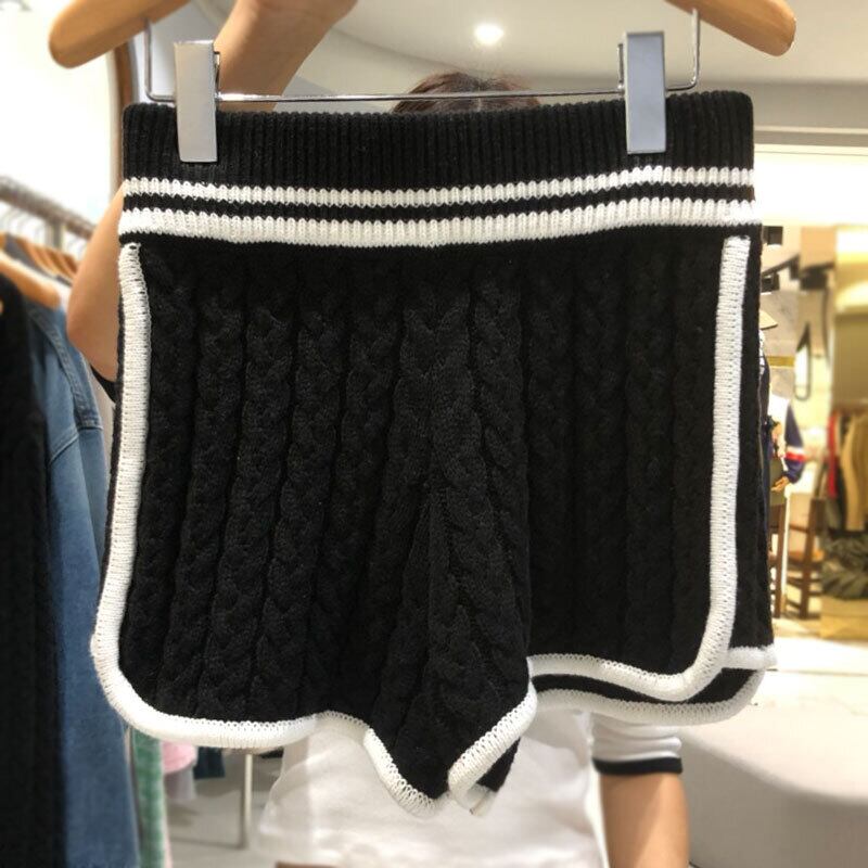 Nomikuma ウエストニットショーツ女性秋冬ボトム 2022 コントラストカラーストライプ因果ワイドレッグショート オータム 秋物 ウィンター 冬物 ブルマー ワイドパンツ kor63019796547