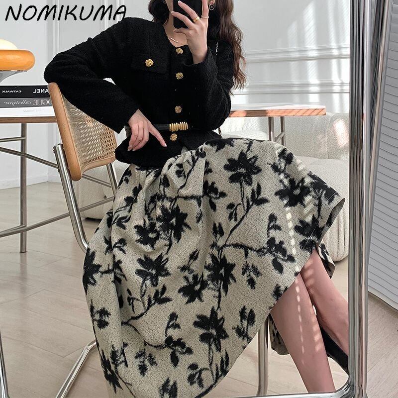 ノミクマ印刷パッチワーク因果 A ラインスカートレディース秋ウエストスカート段 Faldas Moda 2022 オータム 秋物 Aライン kor13199047099