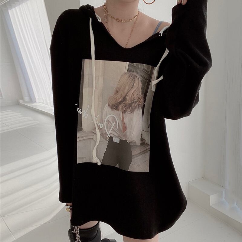 Nomikuma 秋フード付きプルオーバートレーナー文字プリント長袖女性パーカー因果 2021 トップジャンパー 6Z018 ロング オータム 秋物 kor91802295370