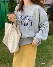 Nomikuma シックな因果 O ネック長袖女性スウェット文字刺繍 2022 秋プルオーバートップジャンパー ロング シャツ オータム 秋物 Oネック kor11276314512