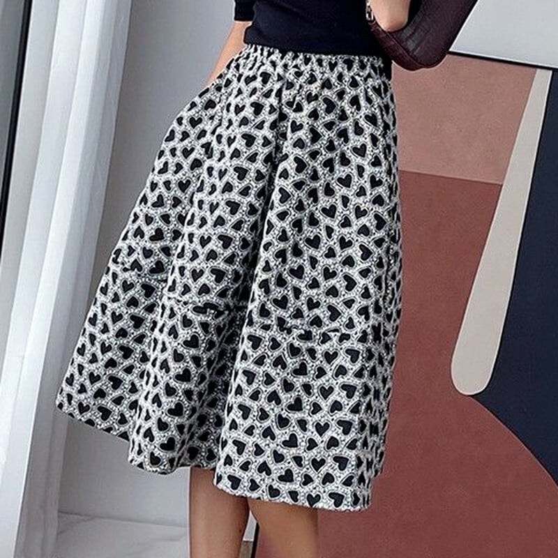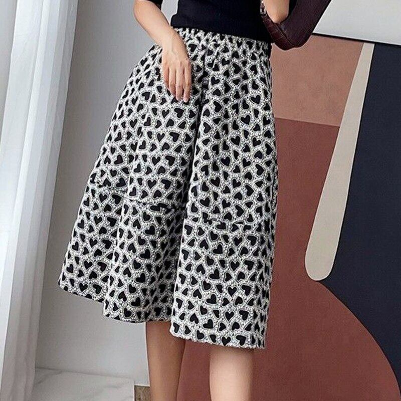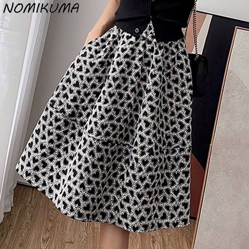 Nomikuma シックな刺繍ラブハート女性スカート 2022 春夏ボトムス因果弾性ウエスト A ラインスカート段 Faldas エラスティック 伸縮 サマー 夏物 Aライン kor21393648643