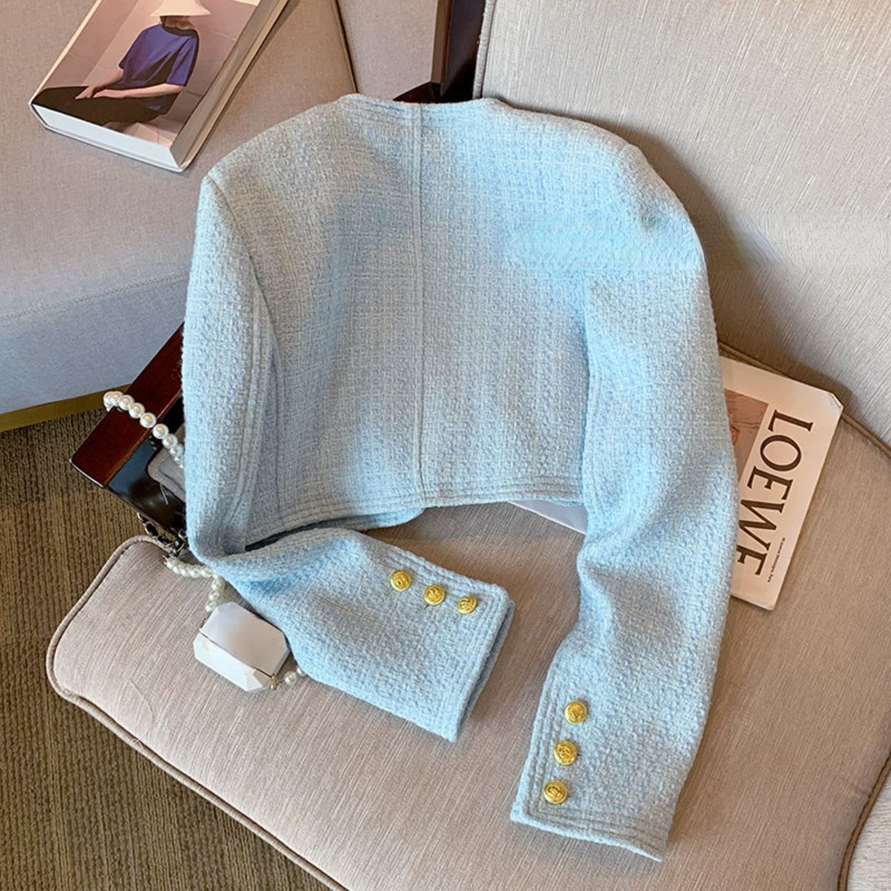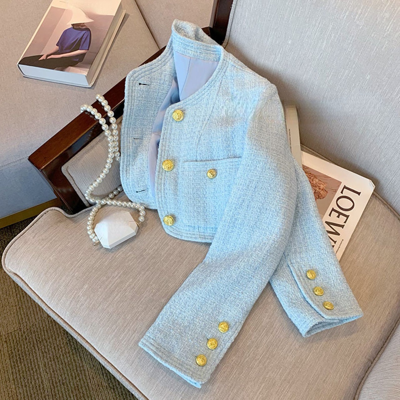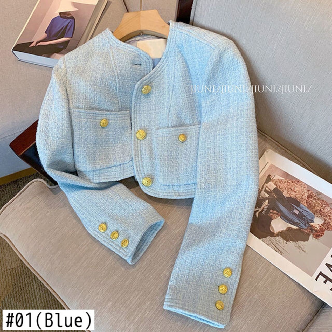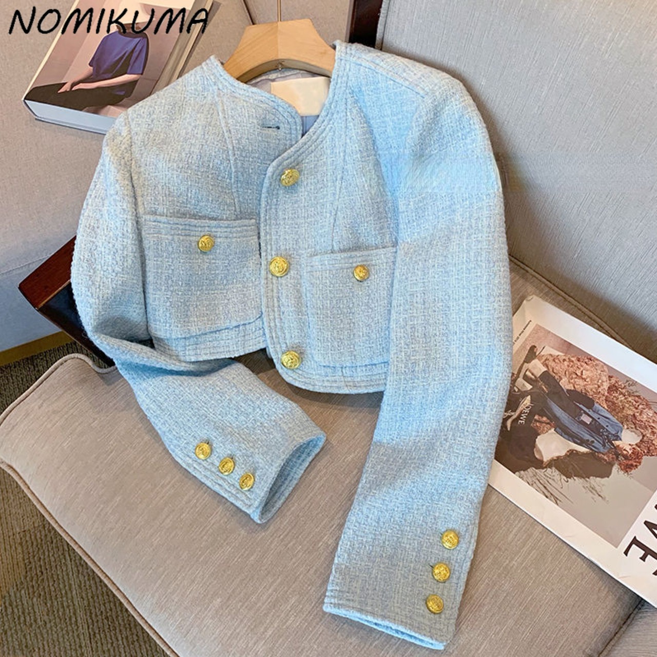 Nomikuma ショートジャケット女性秋 2022 長袖シングルブレスト O ネックコート因果ジャケット ロング オータム 秋物 Oネック kor77942643397
