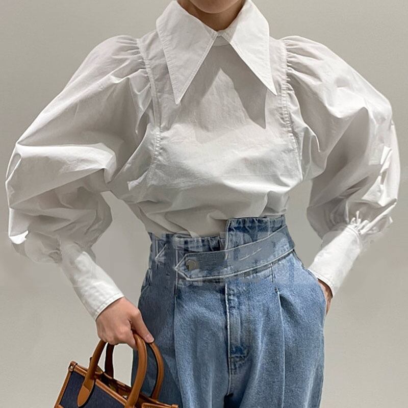 Nomikuma 因果ランタンスリーブ女性ブラウスシックな春トップシャツ 2022 ターンダウン襟デ スプリング 春物 kor68606710543