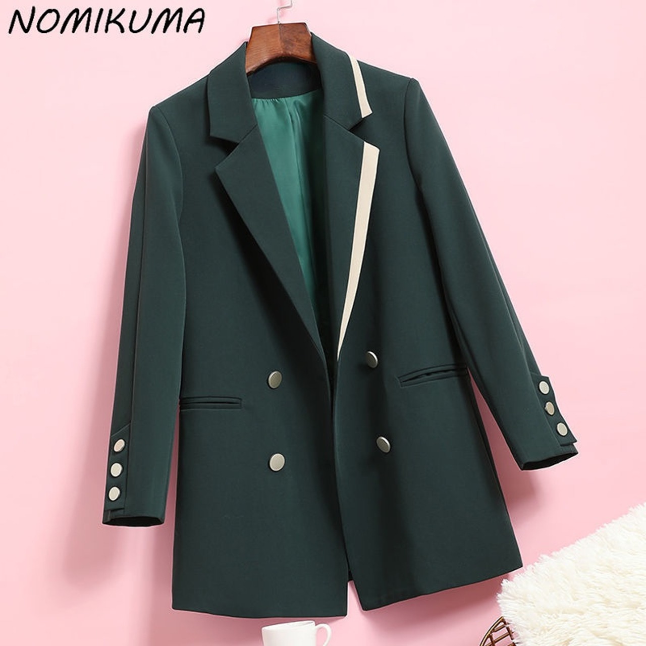 Nomikuma 因果ダブルブレスト女性ブレザーコートコントラストカラーターンダウン襟スーツジャケット 2022 春ブレザー スプリング 春物 kor13528350931