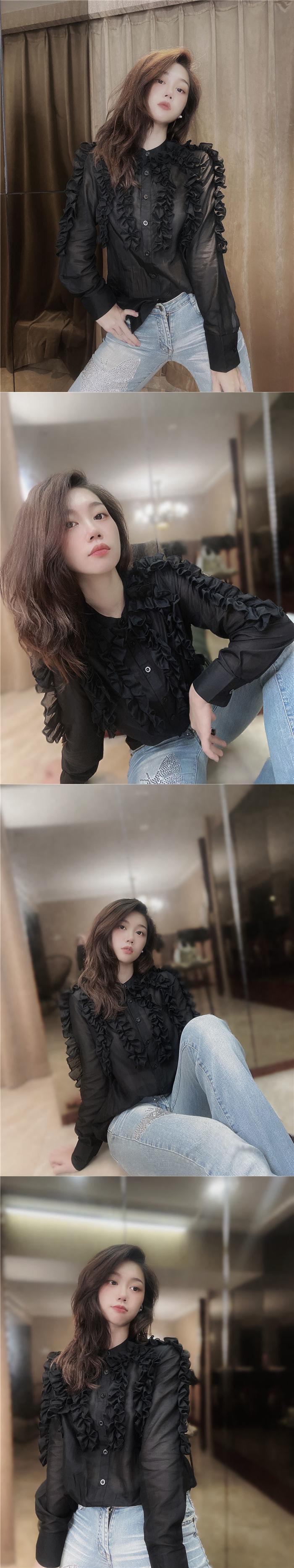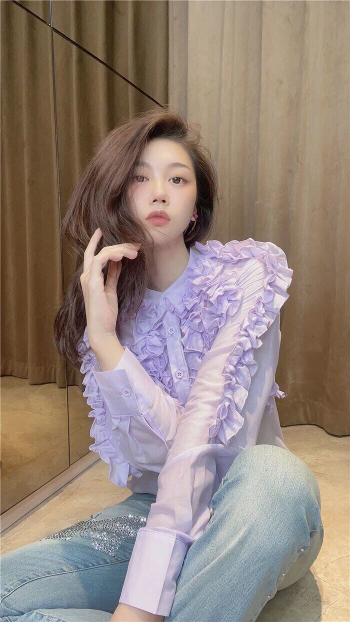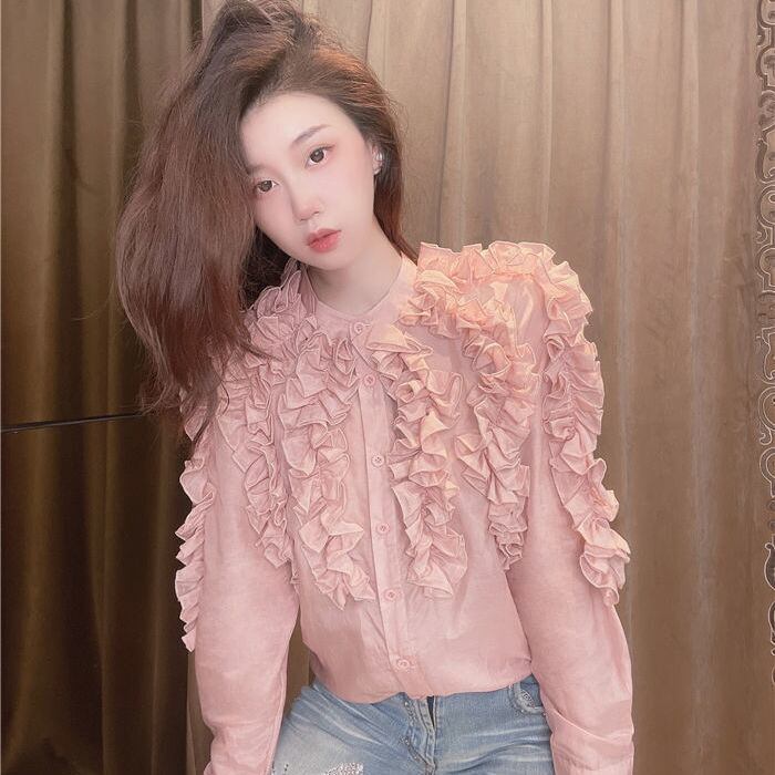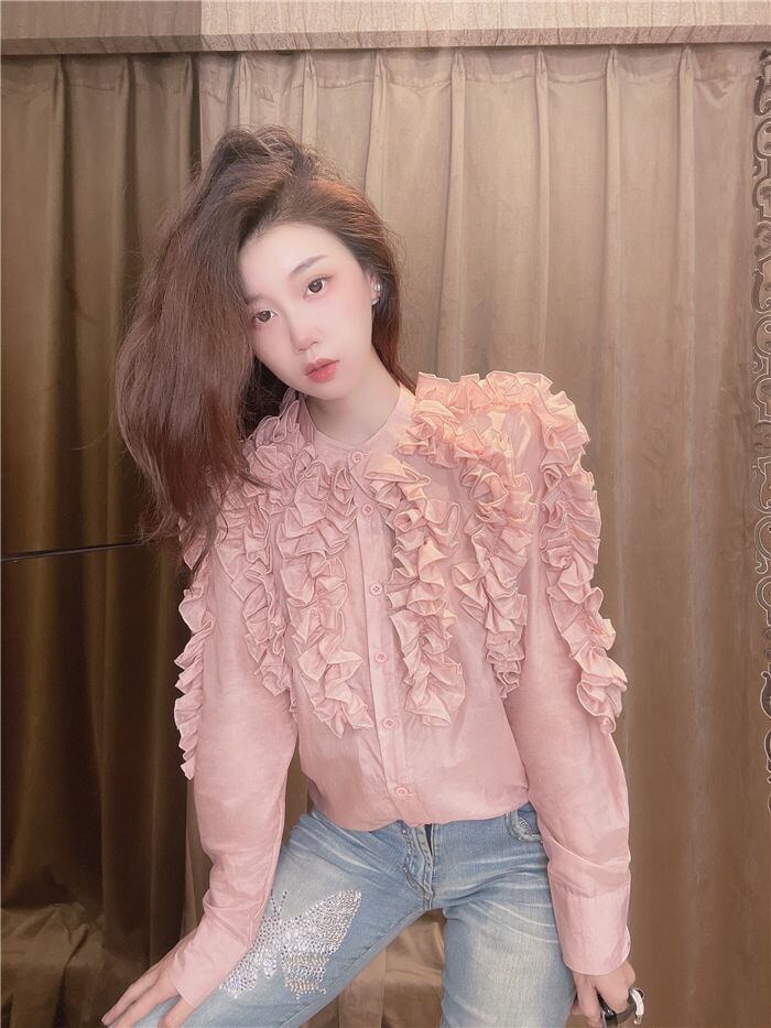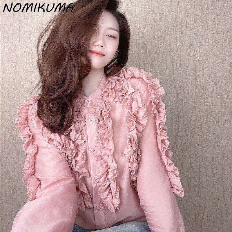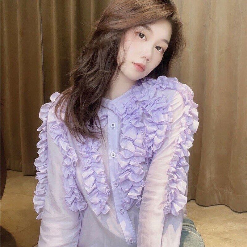 Nomikuma シックなひだフリルパッチワークブラウス女性 2022 春シャツパフスリーブ O ネックデ スプリング 春物 Oネック kor47799505020
