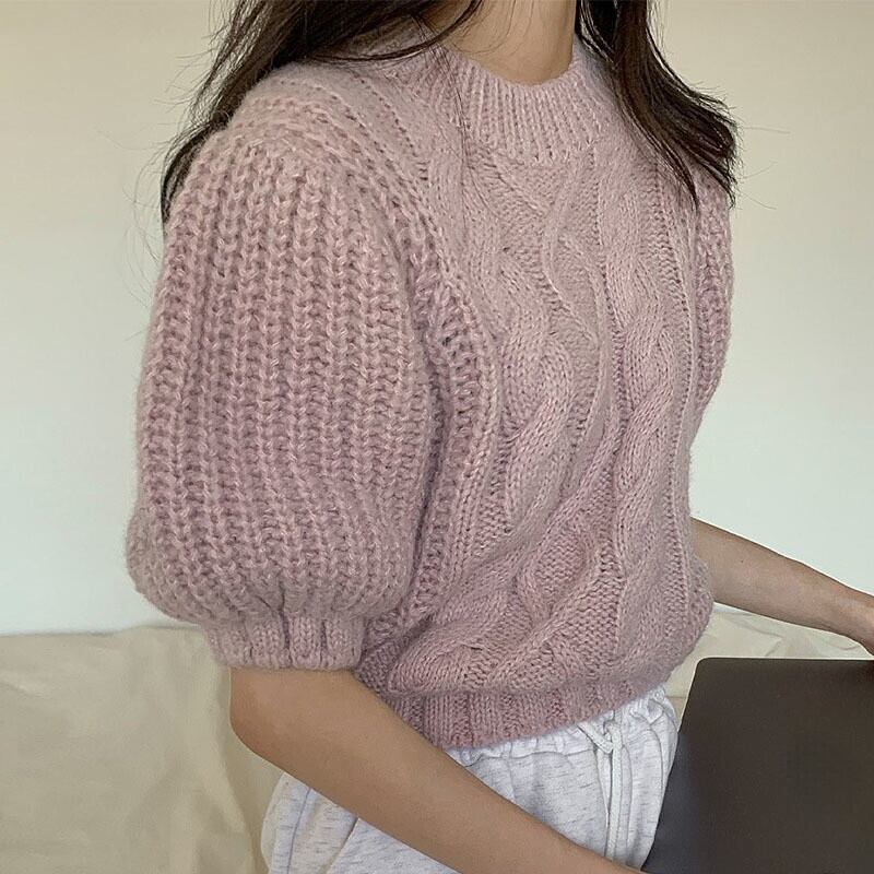 Nomikuma ツイストショートセーターシックな甘いパフスリーブ O ネックプルオーバーニット 2022 春の女性ニットトップスジャンパー 大人ガーリー スウィート キュート カジュアル スプリング 春物 Oネック kor70122208491