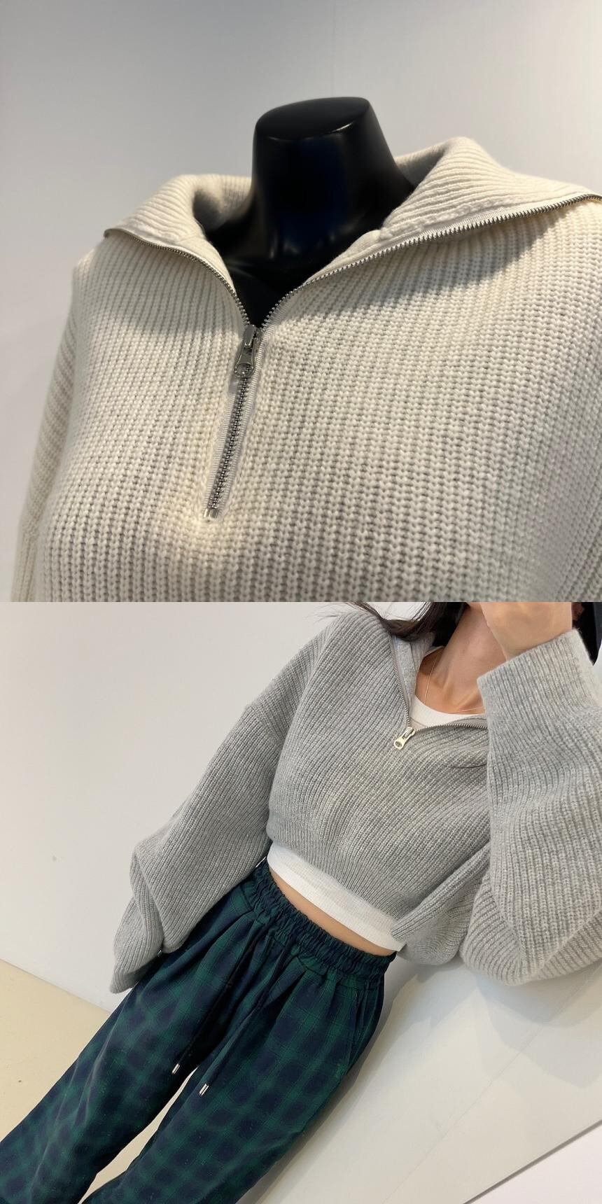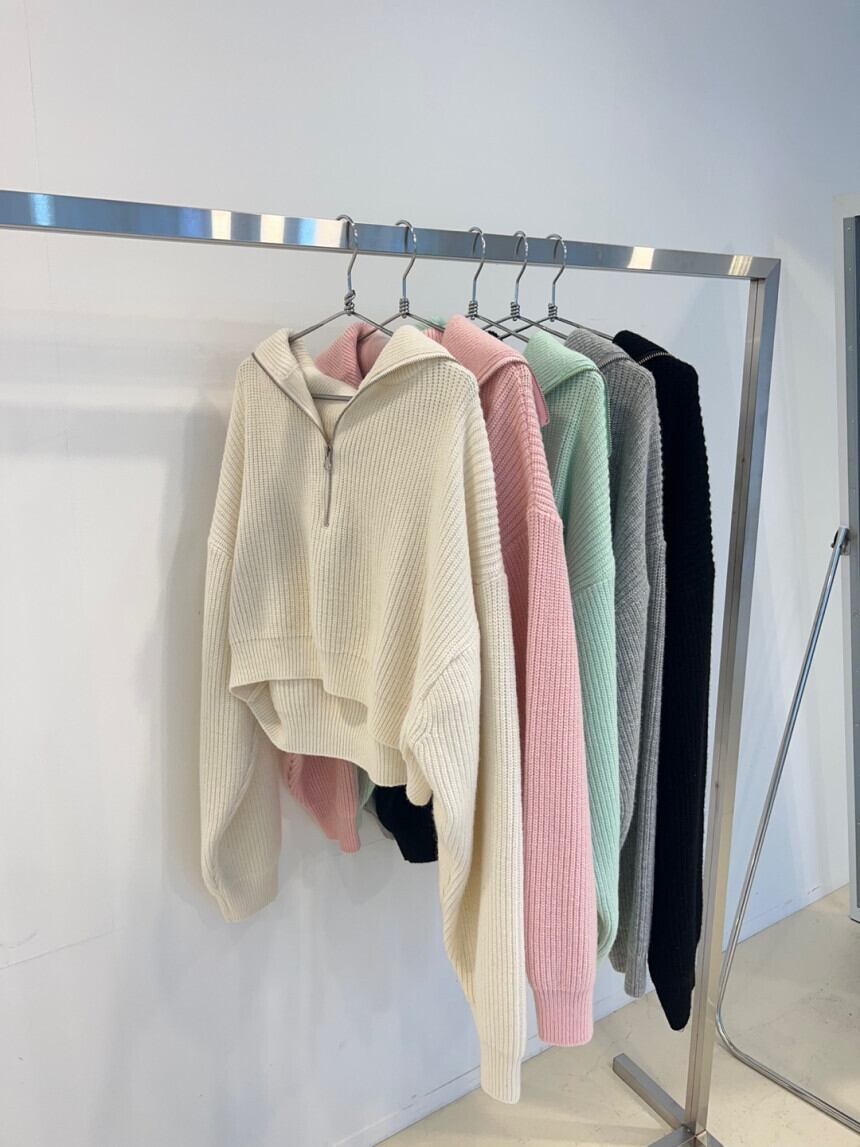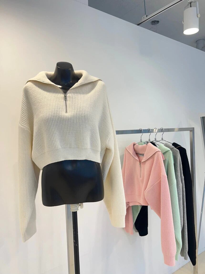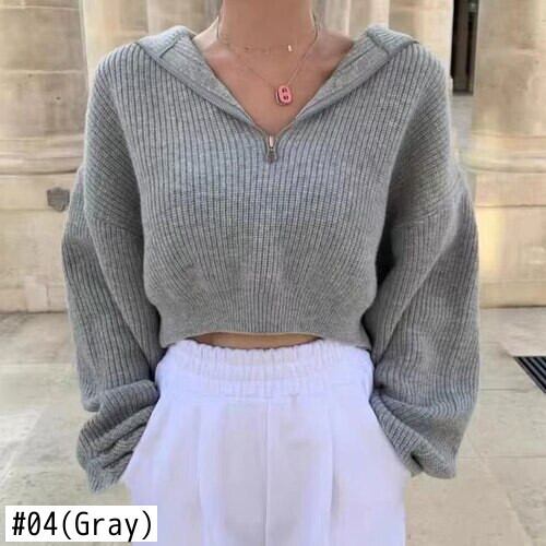 Nomikuma 秋冬ジッパーターンダウン襟プルオーバーセーター因果長袖女性ニットクロップトップジャンパー ロング オータム 秋物 ウィンター 冬物 kor32440149042