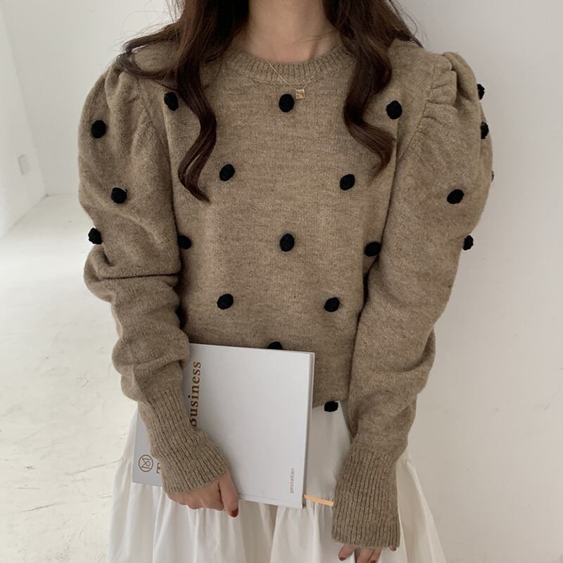 ノミクマシックドットウーマンセーターパフスリーブOネックプルオーバーニットウェア秋冬2021プル6V843 オータム 秋物 ウィンター 冬物 kor51857607616