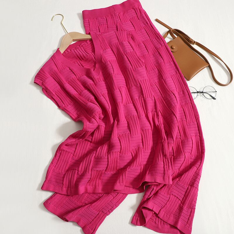 ノミクマセット ノースリーブVネックニット+ウエストワイドレッグロングパンツ 2022年 2点セット レディースコーデ ワイドパンツ kor68522787492