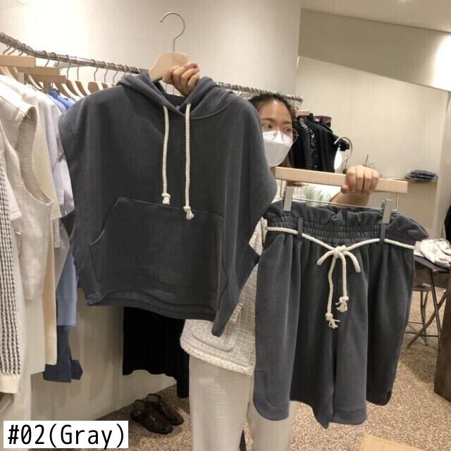 Nomikuma 女性ショーツセットノースリーブフード付きプルオーバースウェットシャツ + レースアップストレッチウエストショーツ 2021 夏 2 ピーススーツ 6H270 ショート サマー 夏物 ブルマー kor80050506160