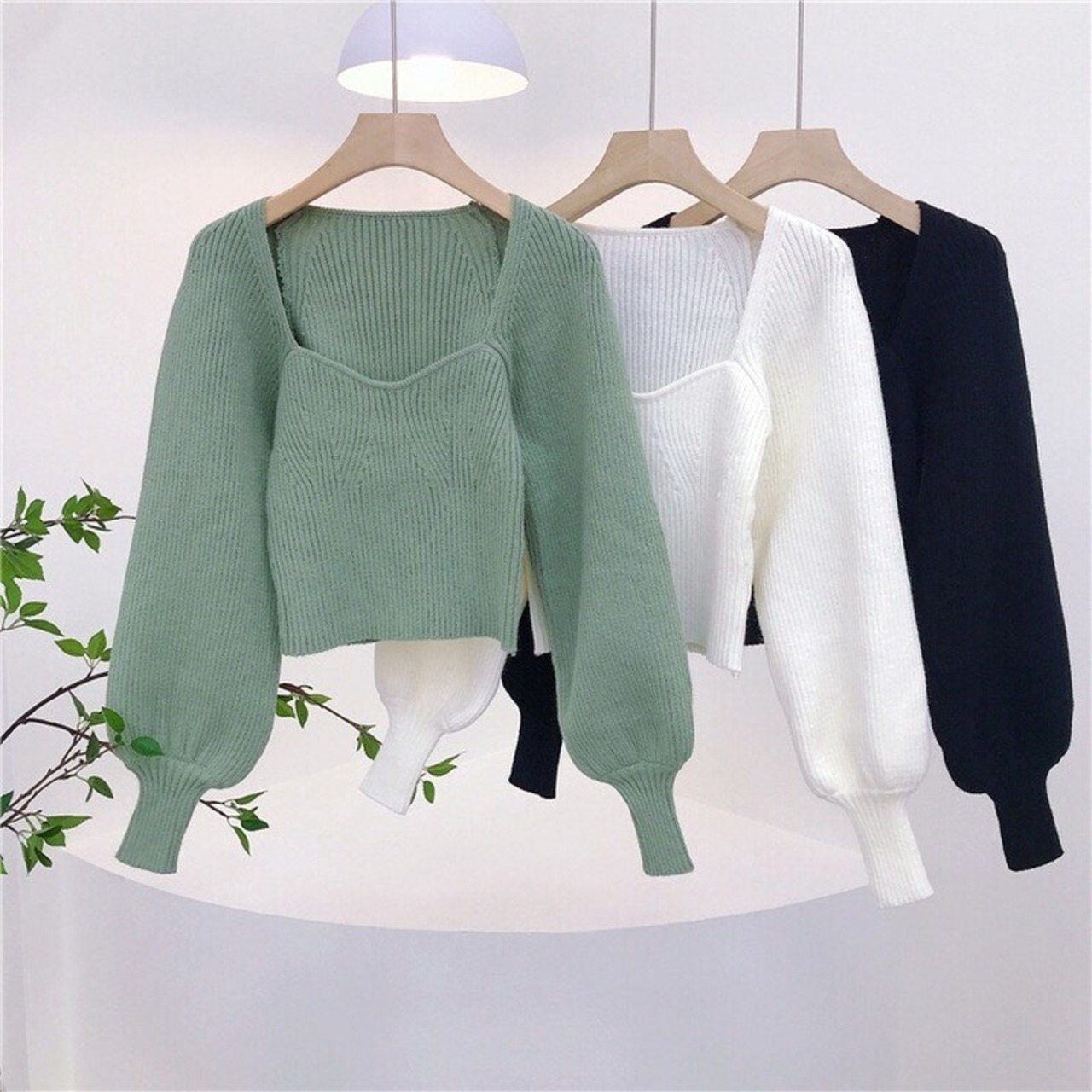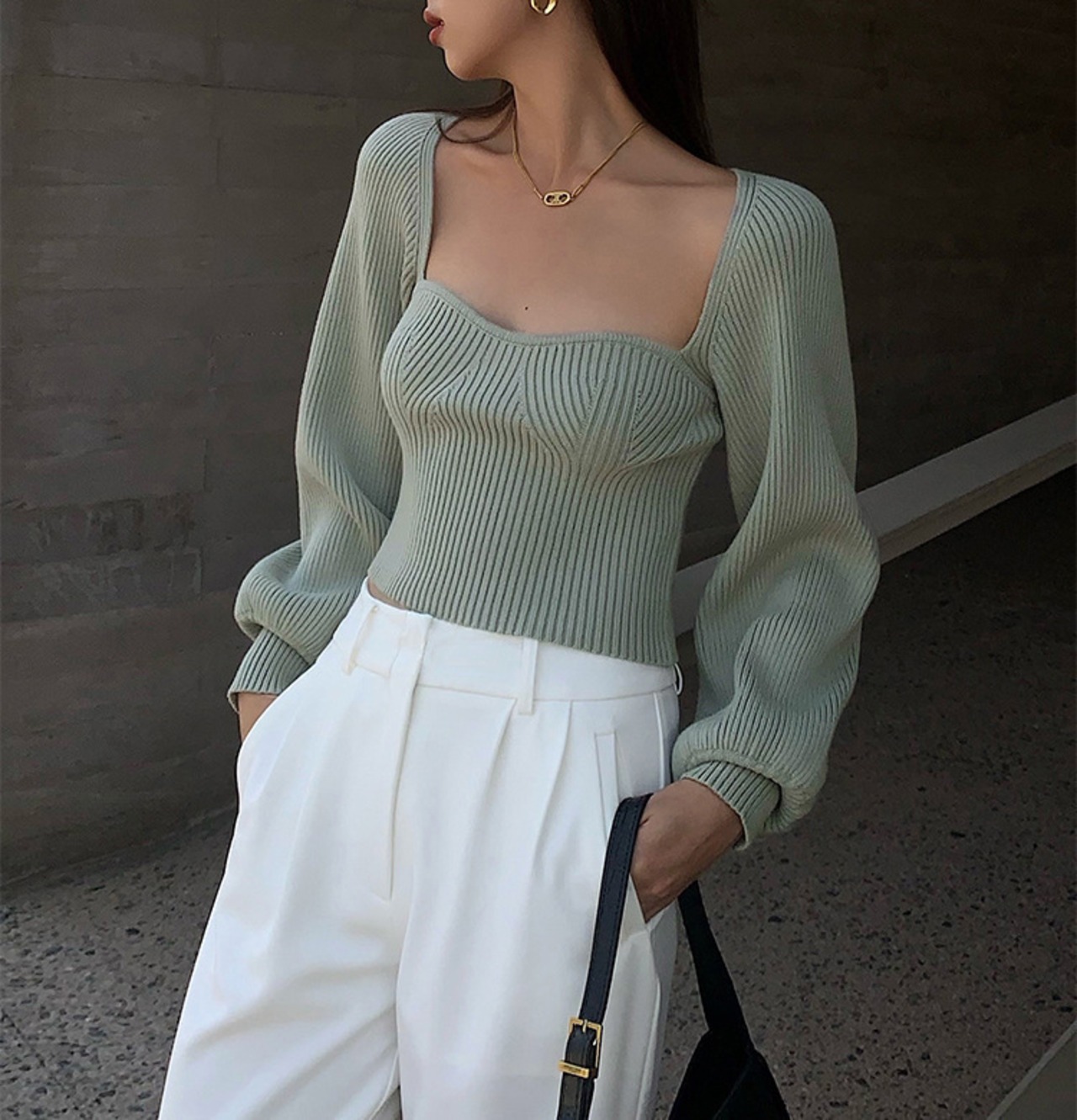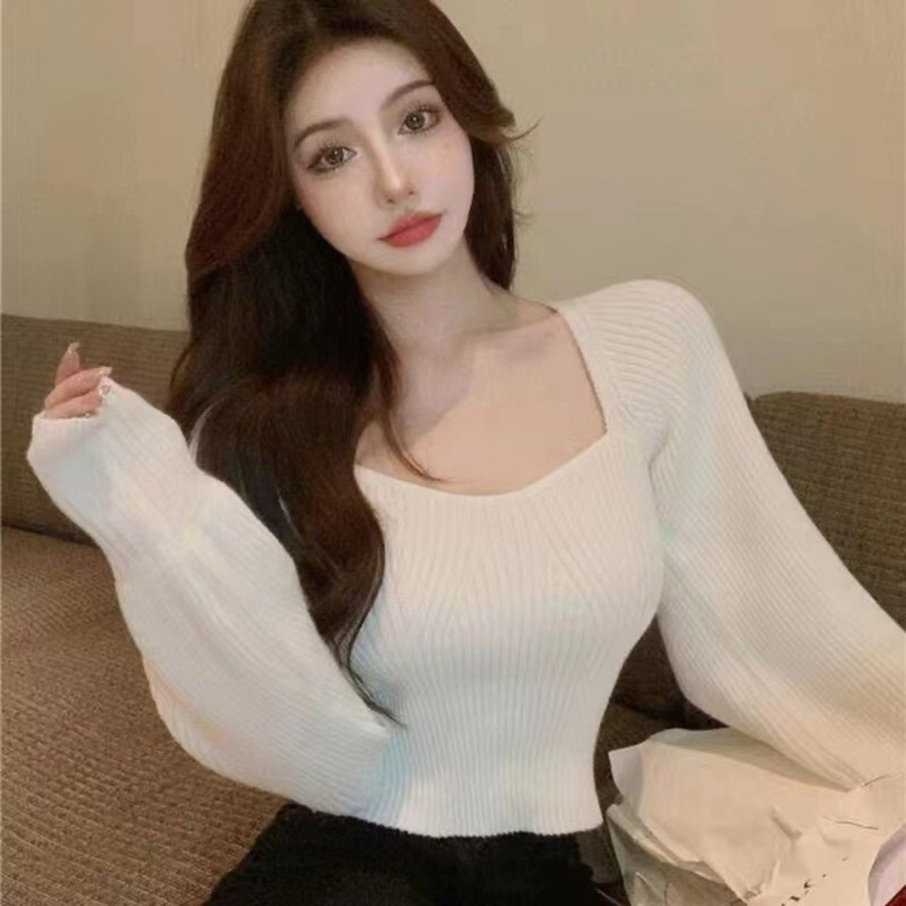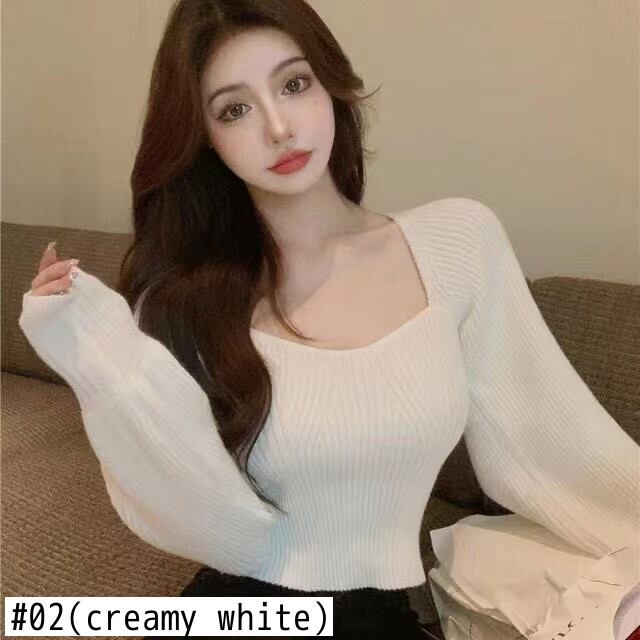 Nomikuma ニット女性 2022 秋冬ベーシックニットセータースクエアカラーランタンスリーブスリムショートプルオーバートップ オータム 秋物 ウィンター 冬物 スクウェア kor32731220704