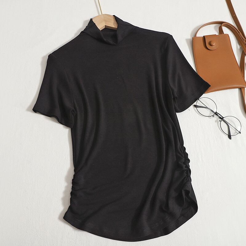 Nomikuma シャーリングハーフタートルネック半袖 Tシャツ女性 2022 秋スリム Baisc グラフィック Tシャツソリッド Tシャツトップ ショート ハーフスリーブ オータム 秋物 ソリッドカラー kor16232595016
