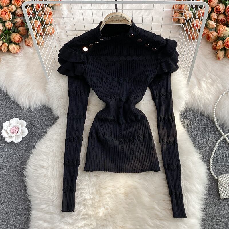 Nomikuma ストレッチスリムニットトップスフリルスタンドカラーニット 2022 長袖女性セーター ロング kor51705868453