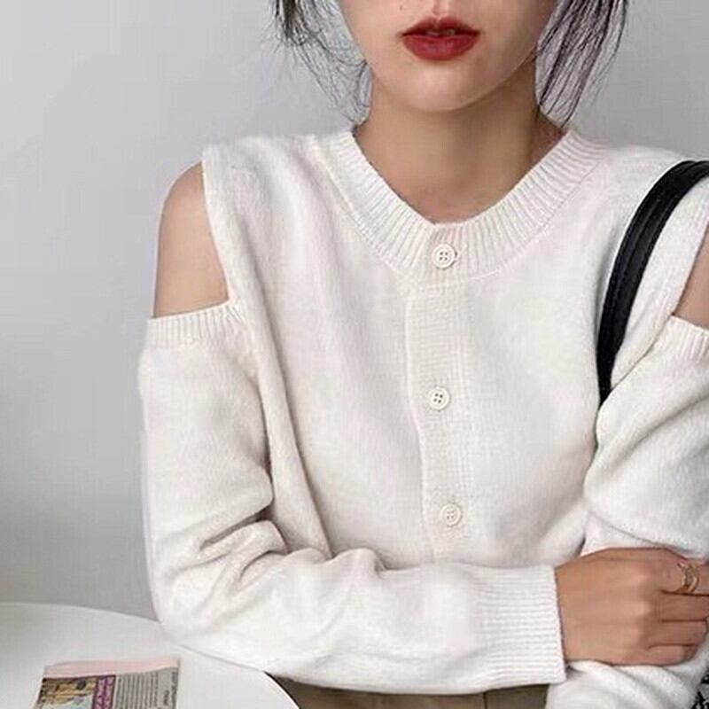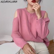 Nomikuma セクシーなストラップレス長袖セーターコート女性 2021 秋シングルブレスト O ネックカーディガン固体ニット 6Z802 ロング オータム 秋物 Oネック ソリッドカラー kor50836076956