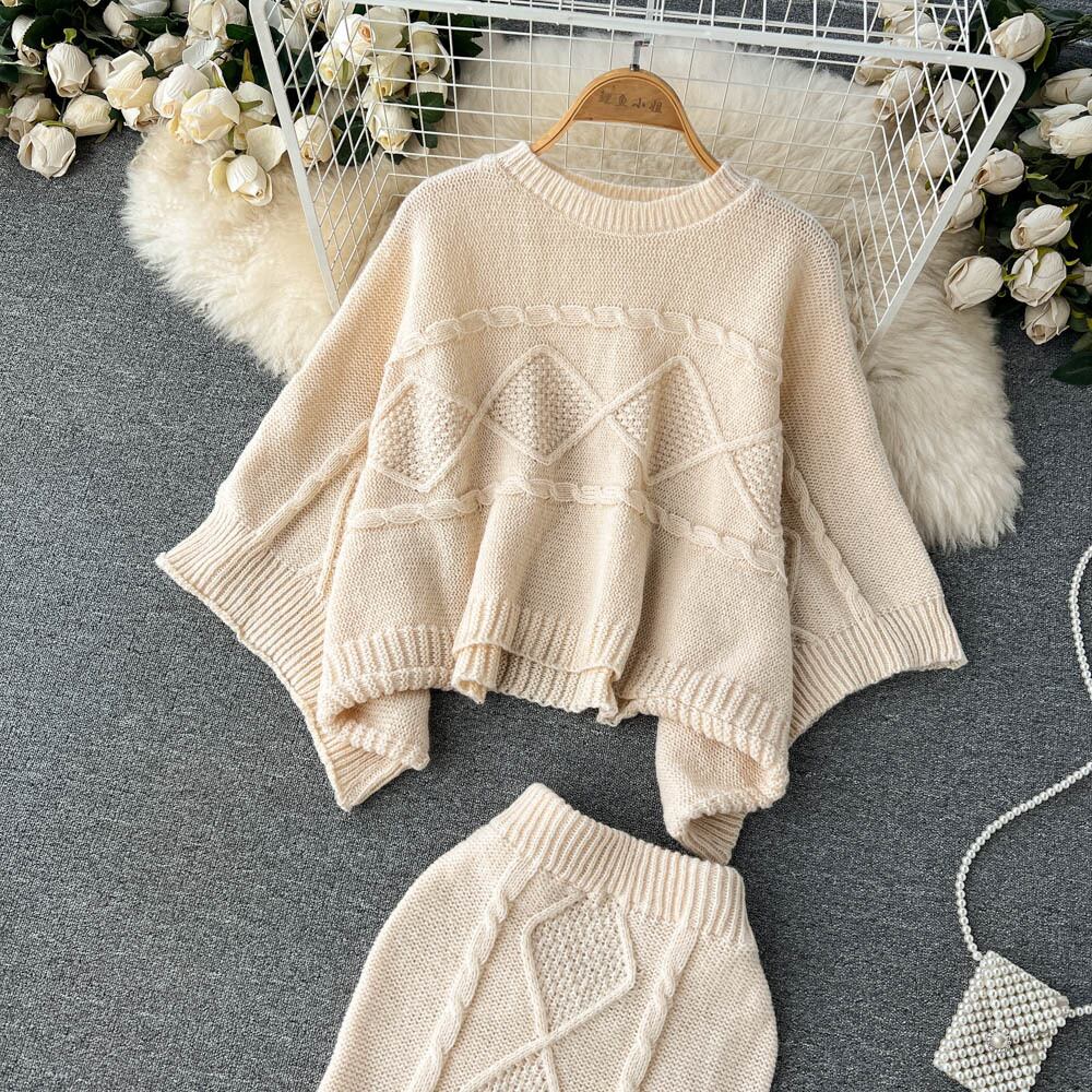 Nomikuma ツイスト ニット 2 ピース セット レディース衣装バットウィング スリーブ プルオーバー ショート セーター + ウエスト スリム スカート スーツ kor30363812522