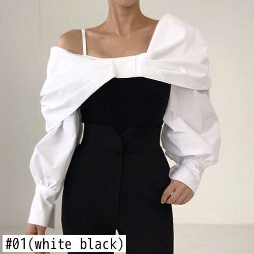 Nomikuma シックな秋ヒットカラーオフショルダーちょう結びブラウス女性ランタン長袖トップス 2022 秋 ロング リボン オータム 秋物 kor3862258727