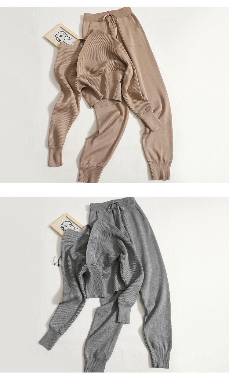 ノミクマ 秋のVネックスリムウエストニット+レースアップウエストハーレムセーターパンツ 2022年秋冬 2点セット オータム 秋物 ウィンター 冬物 kor39349884387