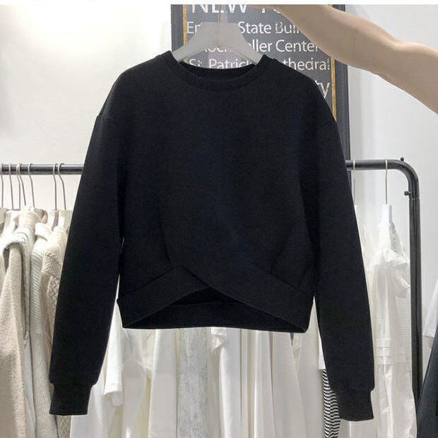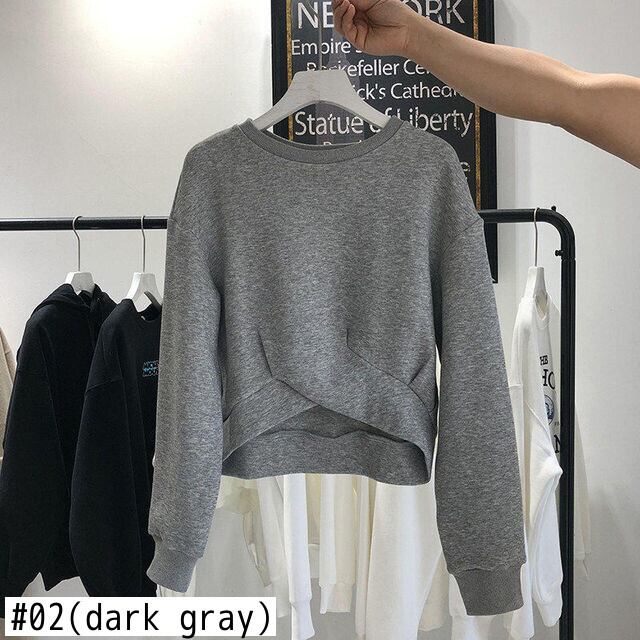 Nomikuma 因果クロスショートプルオーバースウェットシャツ無地長袖 O ネックパーカートップ 2022 秋の女性ジャンパー ロング オータム 秋物 Oネック ソリッドカラー kor28936676940