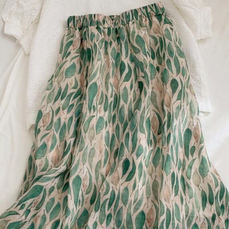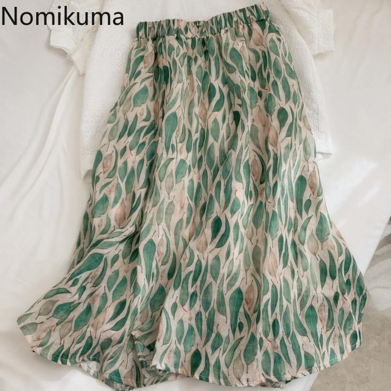 Nomikuma シフォンプリント女性スカートウエスト A ラインスカート 2021 夏因果 A ライン段 Faldas Moda 6G472 サマー 夏物 Aライン kor75198363144