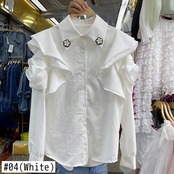 Nomikuma 花ブラウス女性 2022 秋のフリル長袖トップスタイルのシックな Trn ダウン襟シャツ ロング オータム 秋物 フラワーデザイン kor40233616338