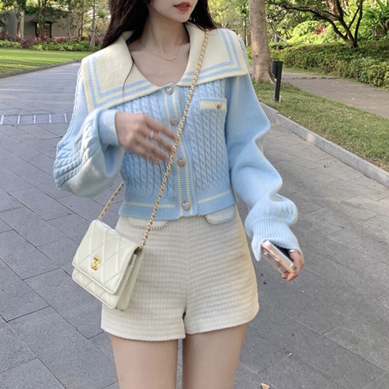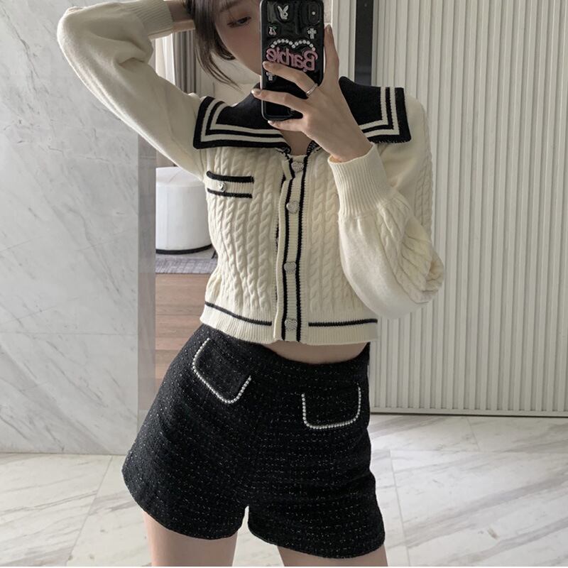 Nomikumaセーラー衿ニットカーディガンコート秋冬シックショートニット2022スウィートスリムショートセーターカーディガン 大人ガーリー キュート カジュアル オータム 秋物 ウィンター 冬物 kor89394043735
