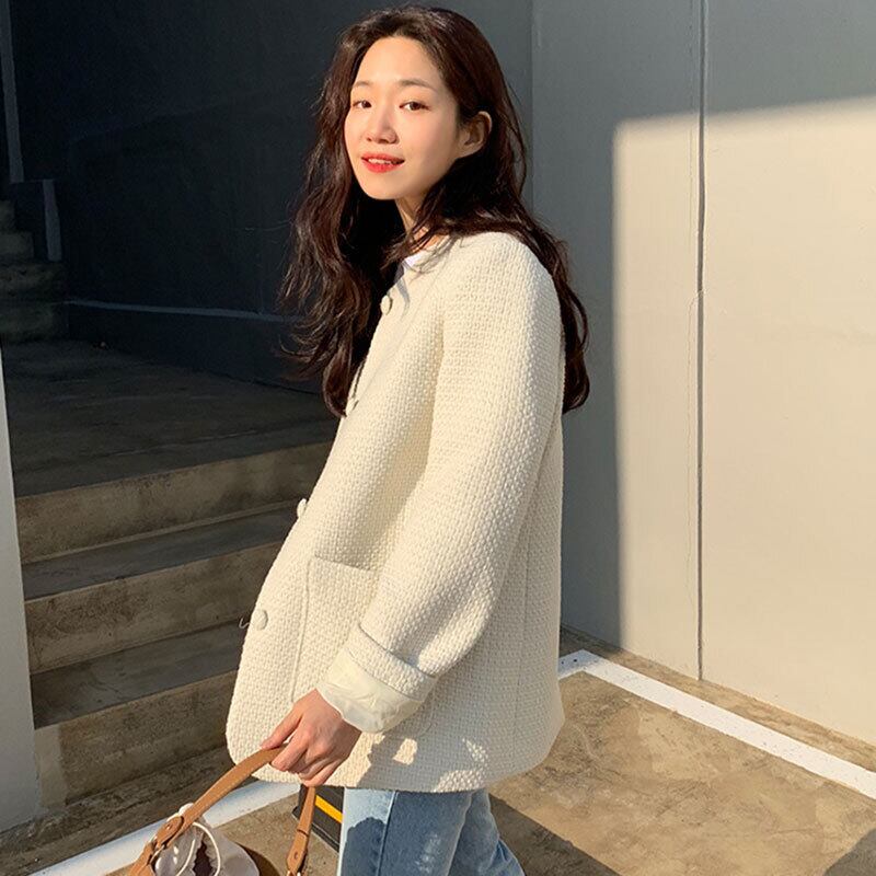 Nomikuma 2021 春ツイード女性コート因果シングルブレスト O ネックジャケット長袖生き抜く 6D871 ロング スプリング 春物 Oネック kor13745196922