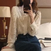 Nomikuma シックな弓包帯レースフック長袖ブラウストップス女性 2022 秋シャツスタイルトップス ロング リボン オータム 秋物 kor34267954672