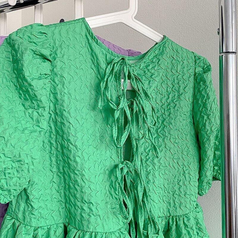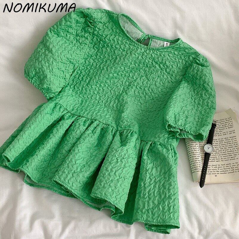 Nomikuma バック蝶ネクタイ甘い人形シャツ 2022 夏因果ブラウス Rojas シックなパフスリーブ O ネックレディーストップス リボン 大人ガーリー スウィート キュート カジュアル サマー 夏物 Oネック kor6546873997