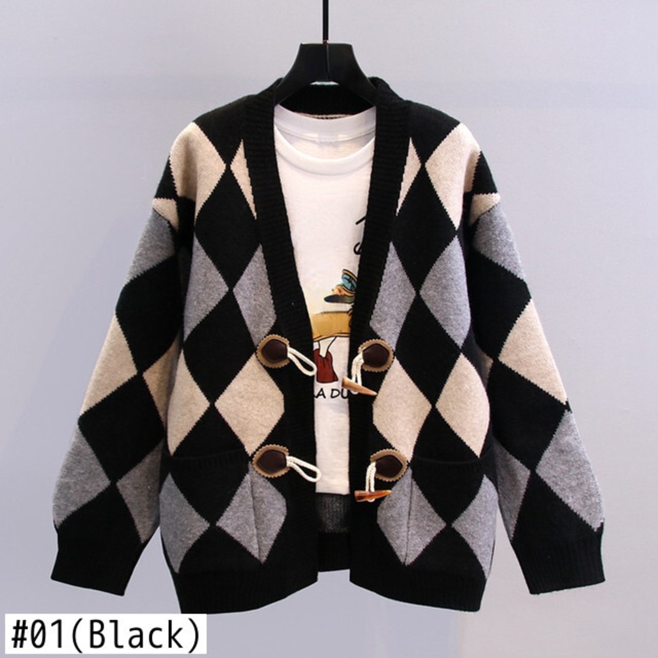 Nomikuma ヒットカラーアーガイルセーターカーディガン女性秋冬 2022 ニットコート因果ホーンバックルニット オータム 秋物 ウィンター 冬物 kor25008247964