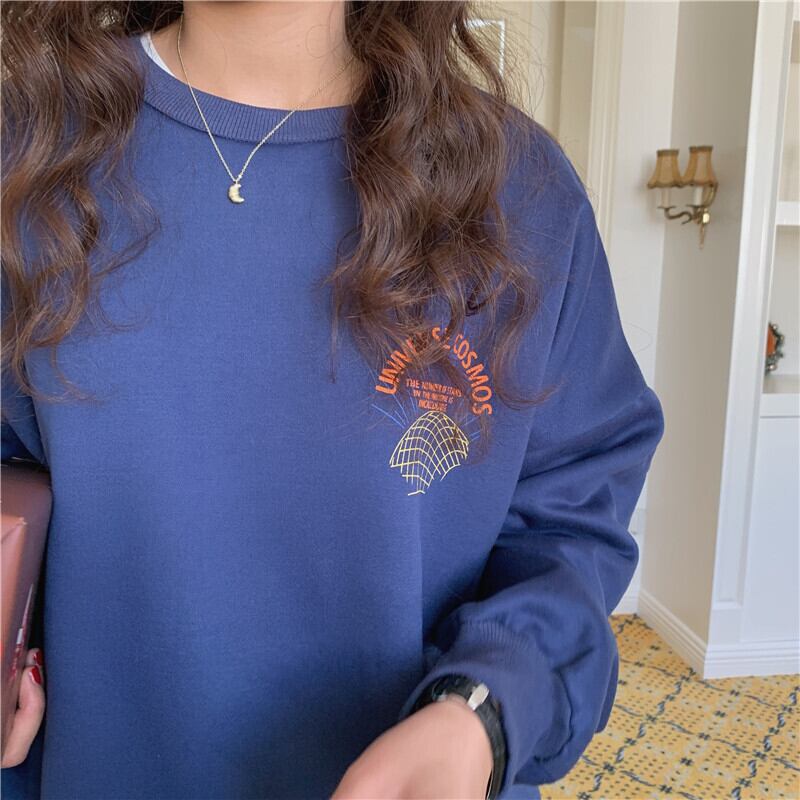 Nomikuma 因果長袖フリーススウェットシャツの女性の手紙プリントプルオーバートップジャンパー 2022 秋冬パーカー ロング オータム 秋物 ウィンター 冬物 kor63323342102