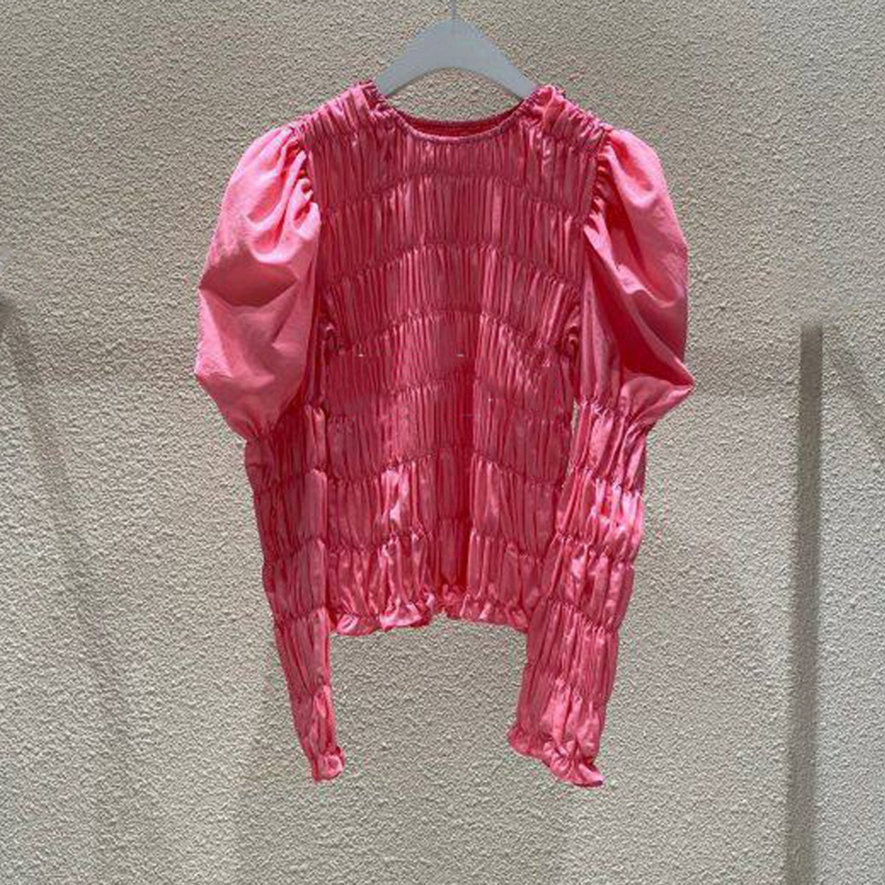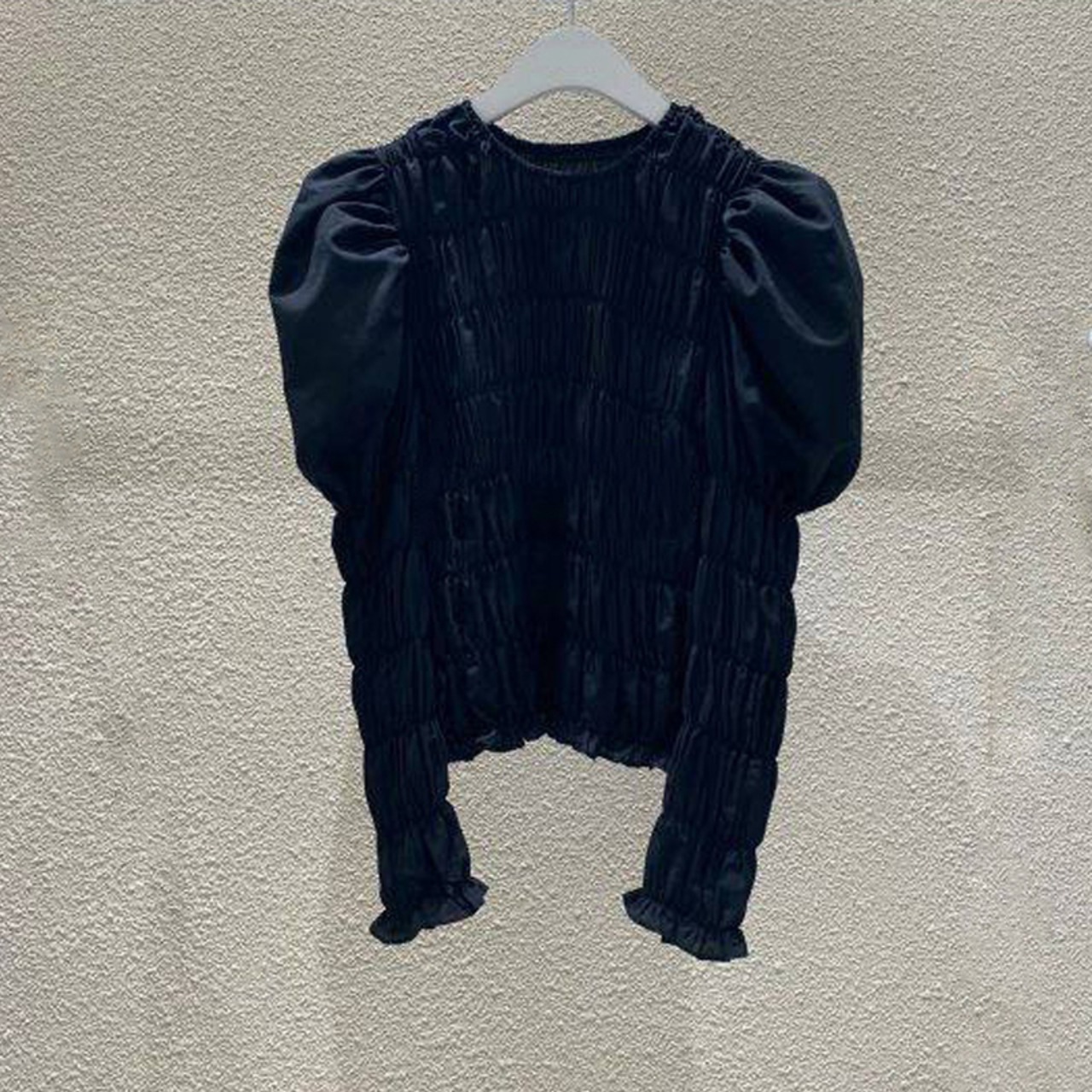 Nomikuma プリーツ ストレッチ スリム レディース ブラウス トップ パフ 長袖 O ネック シャツ 2020 秋 6C595 ロング オータム 秋物 Oネック kor69074909678
