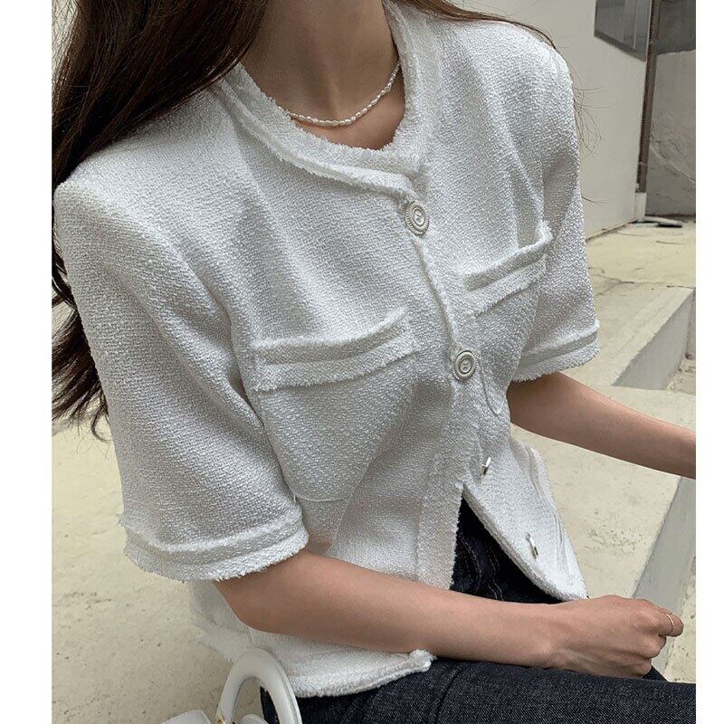ノミクマ半袖女性コート O ネックシングルブレストジャケット 2022 ダブルポケット生き抜くトップス ショート ハーフスリーブ Oネック kor37274724383