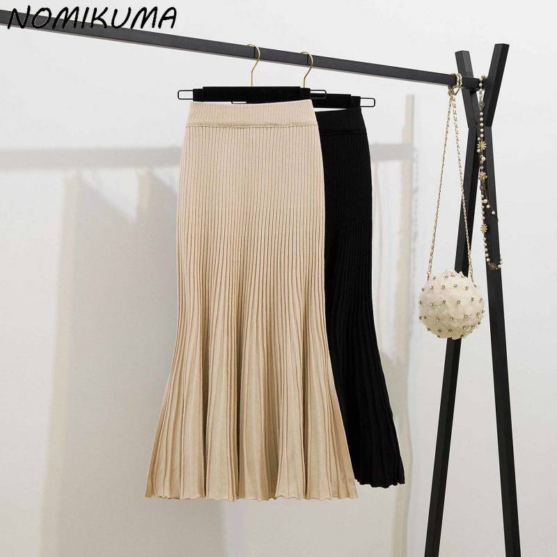 Nomikuma 厚みのあるニットマーメイドスカート女性ミディアムロング秋冬 2022 固体プリーツセータースカート段 Faldas デ オータム 秋物 ウィンター 冬物 ソリッドカラー kor85511555556