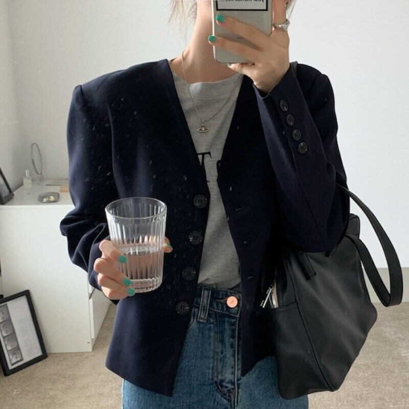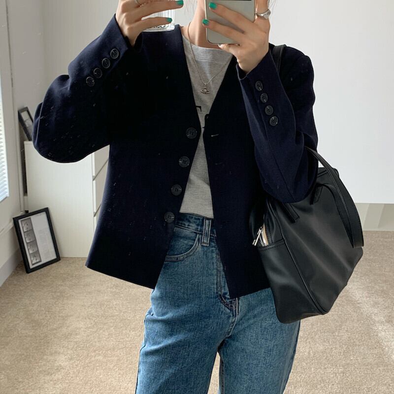Nomikuma ショート V ネックブレザーコート因果長袖女性スーツジャケット 2021 春シングルブレストブレザー Feminimos 6G204 ロング スプリング 春物 Vネック kor63223716383