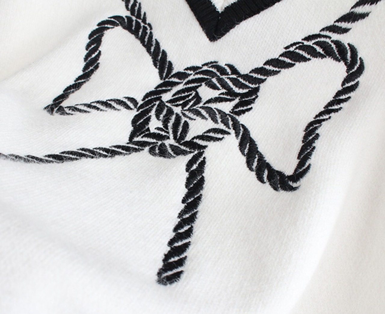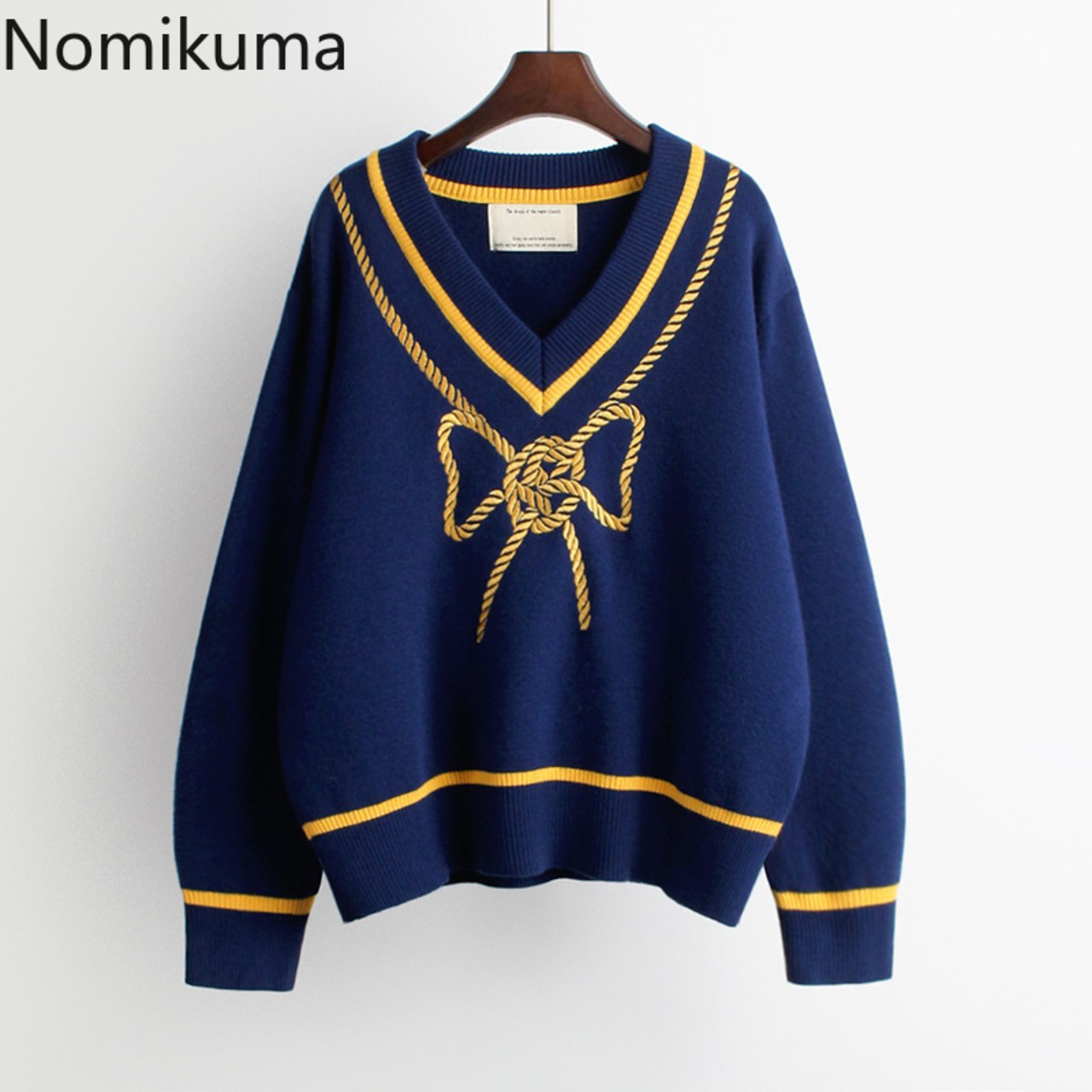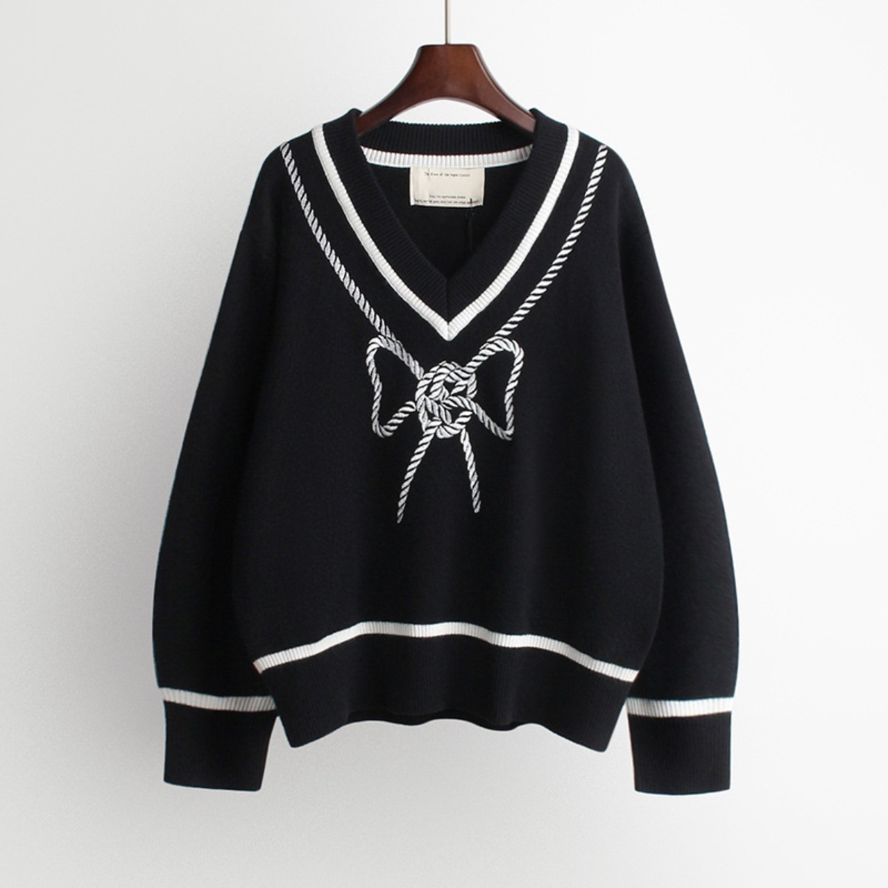 Nomikuma ちょう結びジャカード Cauasl プルオーバー V ネックセーター 2020 秋長袖女性トップス甘いプル 6B607 ロング リボン 大人ガーリー スウィート キュート カジュアル オータム 秋物 Vネック kor34952858590