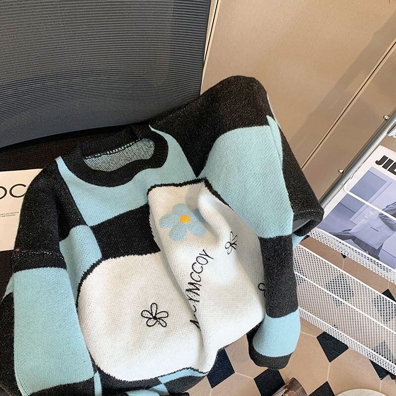 Nomikuma ヒットカラーチェック柄ラブハートフラワーセーター因果長袖女性ニット 2022 秋冬プル ロング オータム 秋物 ウィンター 冬物 フラワーデザイン kor5929282038